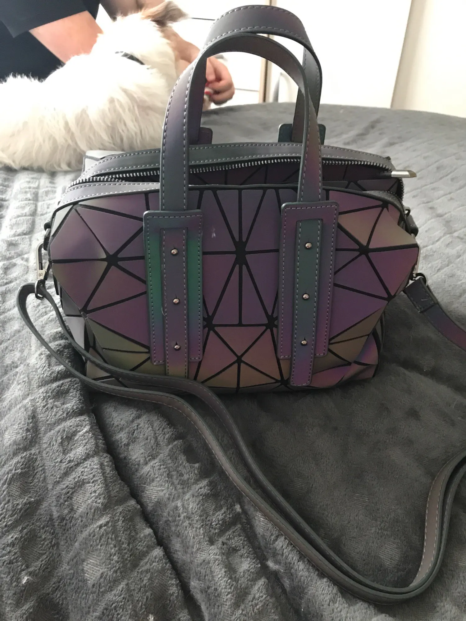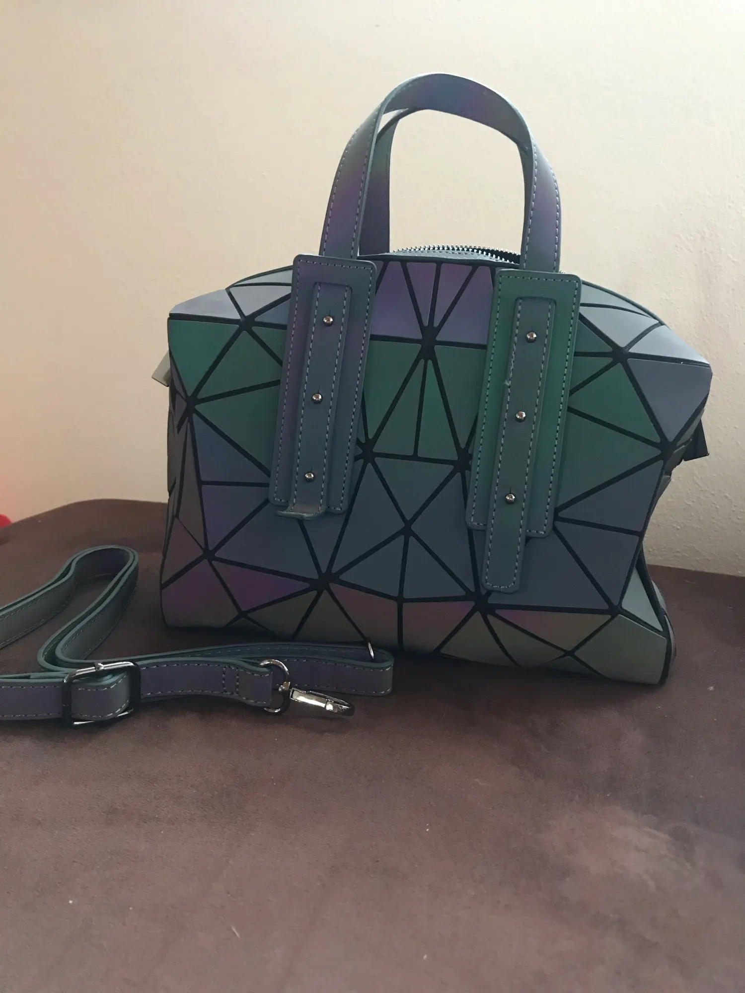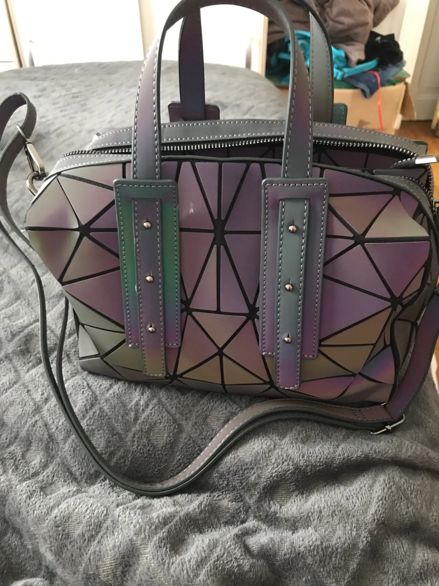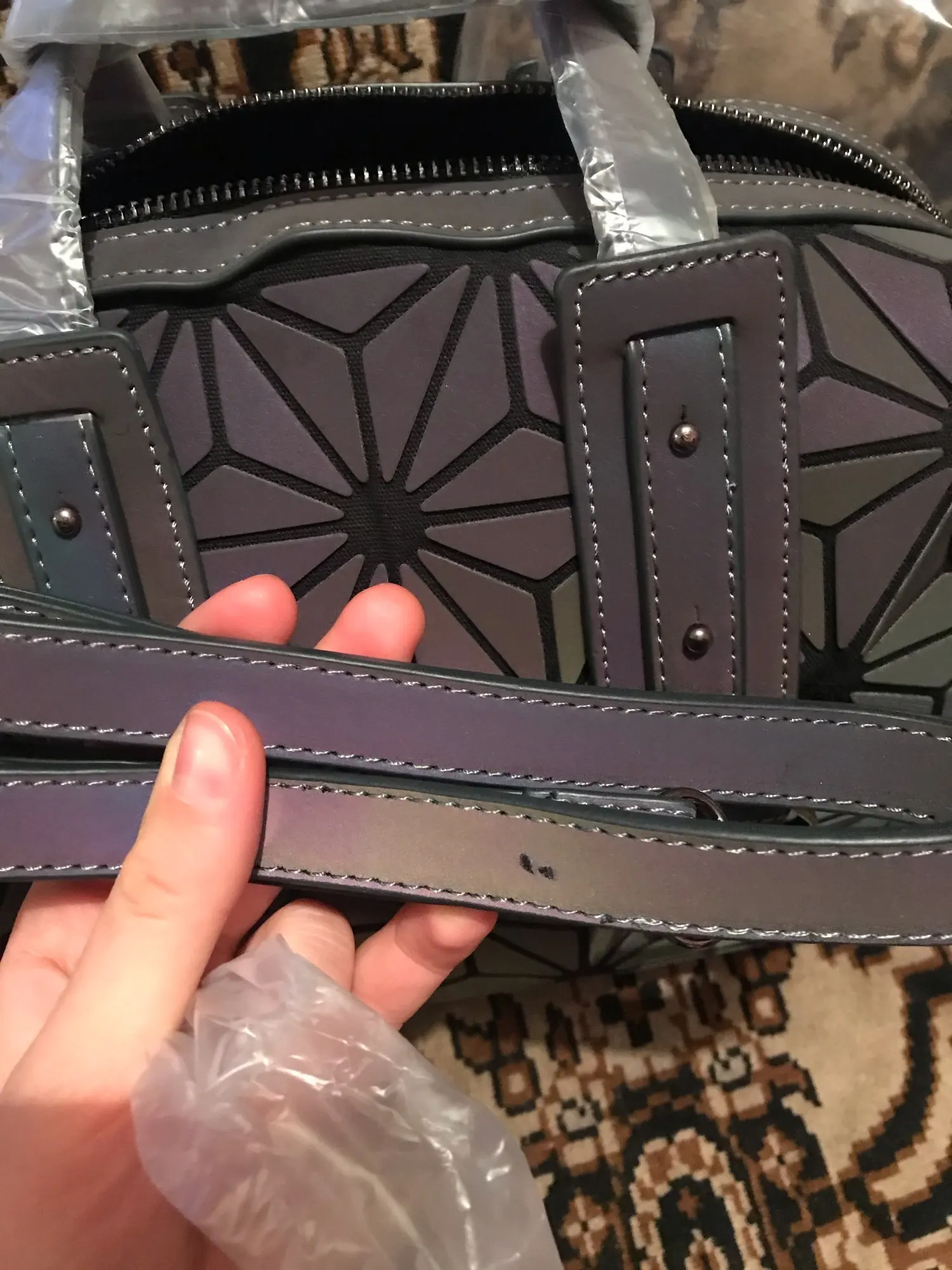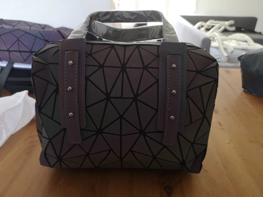 Сумка соответствует описанию, качество верное, Быстрая отправка, только с нижней стороны 2 небольших внутренних кармана не пригодны для использования, потому что как только мы кладем некоторые вещи, они падают на дно сумки, но я не разочарован своей покупкой. Он меняет цвет в зависимости от его воздействия на свет. Я пользуюсь им более месяца, это отличается от того, что кнопка поддержки, к сожалению, спрыгнула после того, как иногда случаются дефекты на любом товаре, поэтому я не буду держать строгим к продавцу.