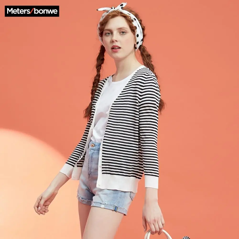 Вязаный кардиган Metersbonwe, женский свитер, летняя простая Однотонная легкая тонкая одежда, модный кардиган для женщин