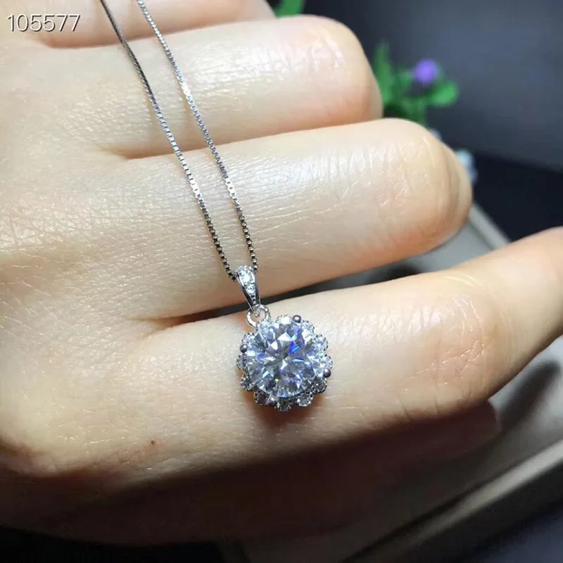 MeiBaPJ высокое качество Moissanite бриллиантовый цветок кулон ожерелье для женщин Настоящее серебро 925 пробы хорошее ювелирное изделие