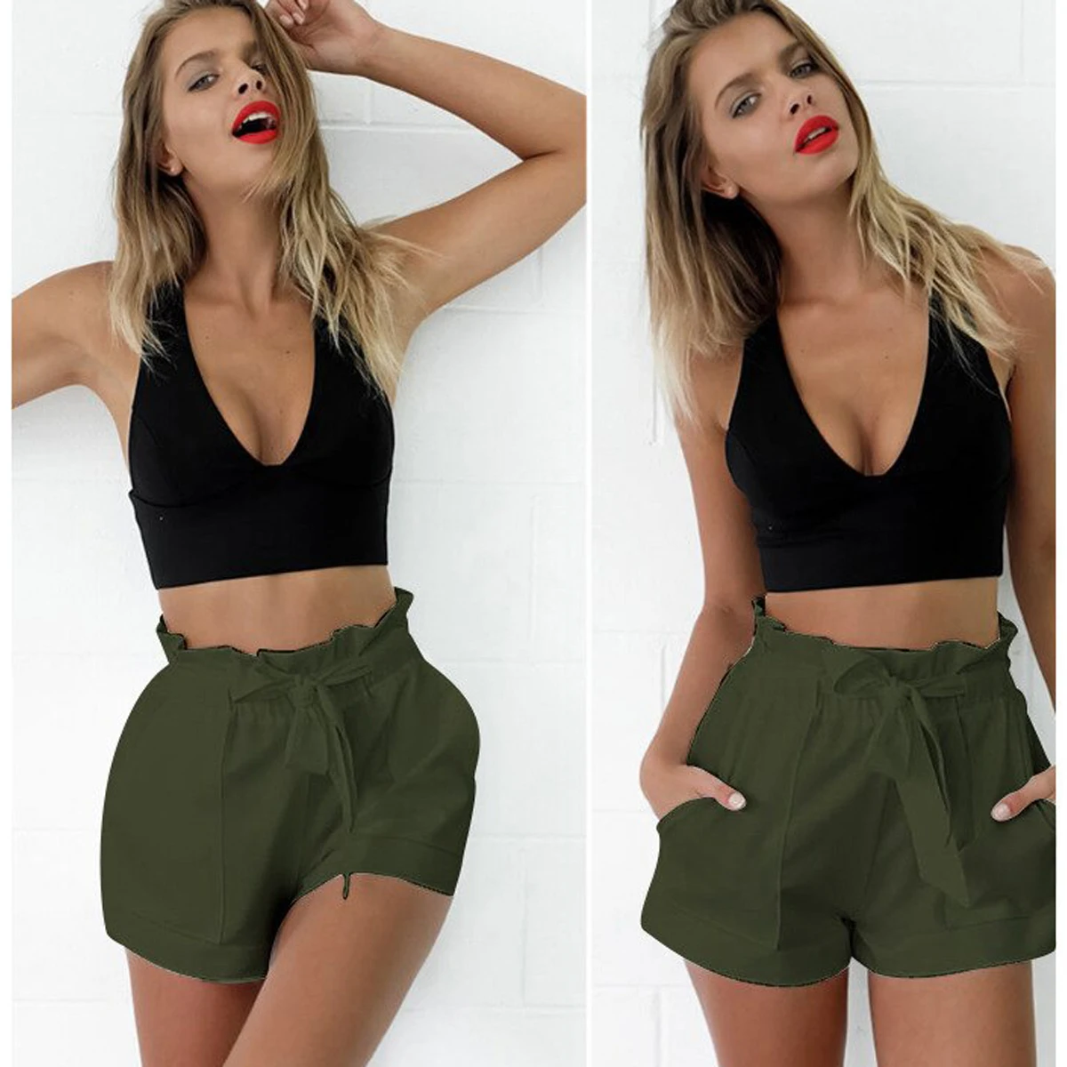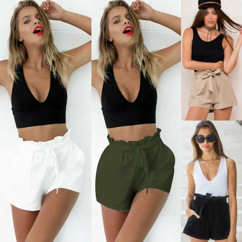 Новейшая модная женская пикантная тонкая свободная однотонная сумка с завышенной талией, бумажный пояс, шорты для отдыха на лето