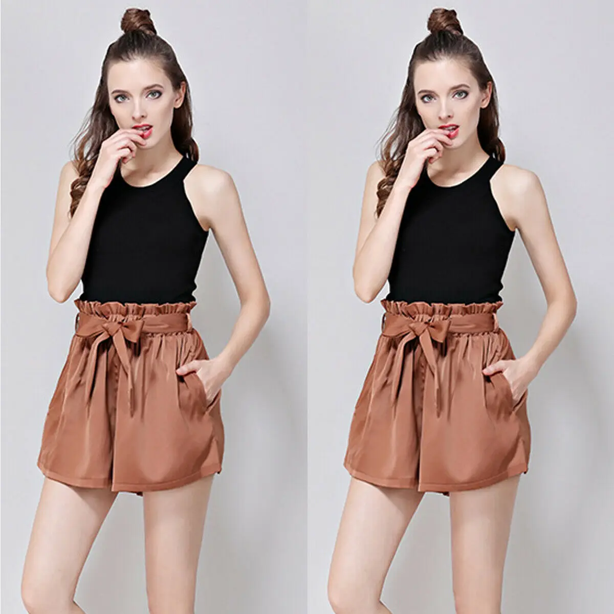 Шорты женские летние с завышенной талией и ремнем на завязках, 2019