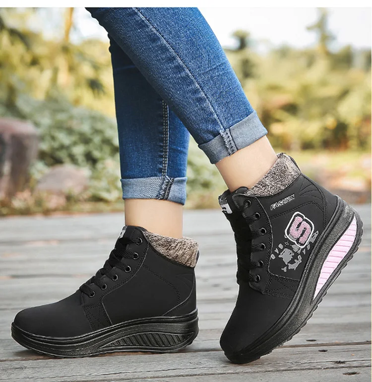 Женские ботинки, зимние ботинки для снежной погоды, женские зимние кроссовки на платформе, плюшевые ботинки на шнуровке, женские ботинки 2019