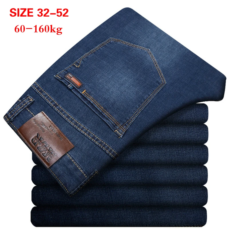 Осенне-зимние мужские классические прямые мешковатые джинсы размера плюс 32-52, мужские повседневные джинсовые брюки большого размера 160 кг