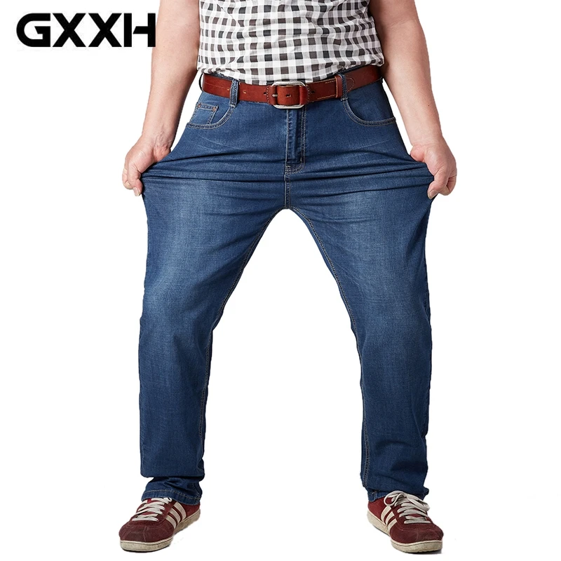 Большие мужские джинсы с эластичной резинкой на талии, мужские повседневные Стрейчевые прямые джинсы, большие размеры 44, 46, 48, Свободные мешковатые мужские джинсы, 8XL, 7XL, 5XL, 6XL