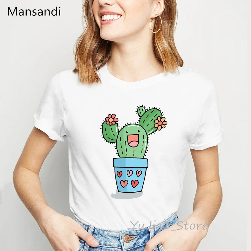 Футболка женская с принтом кактуса и воздушного шара, белая