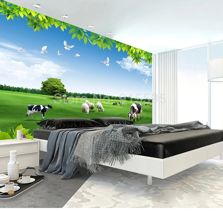 Настенная бумага на заказ, голубое небо, белые облака, коровы, луга, естественный пейзаж, 3D Фотофон, гостиная, спальня, настенная бумага