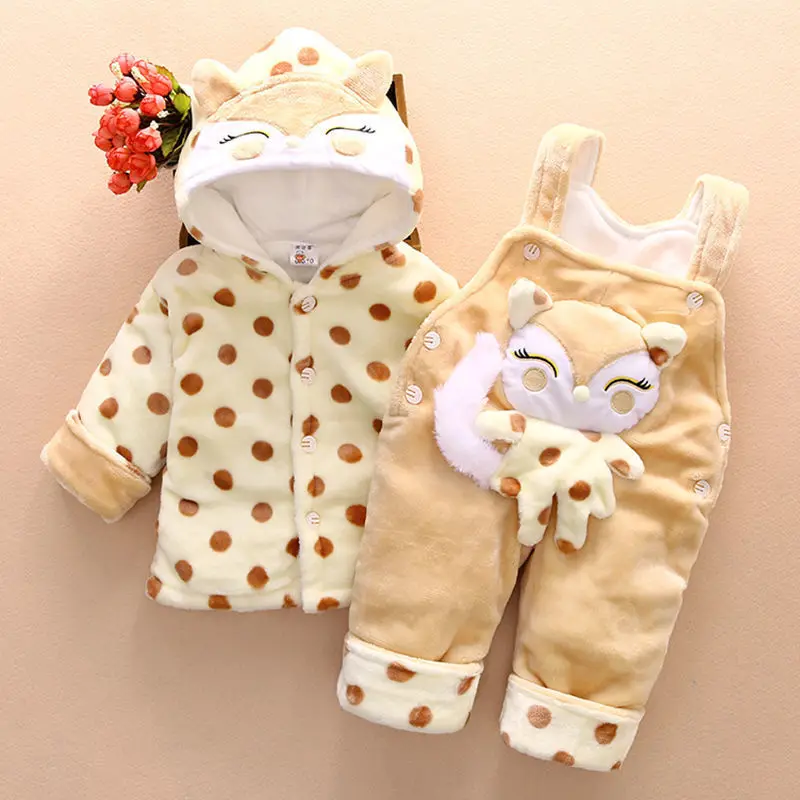 Комплект одежды для малышей, зимний теплый хлопковый костюм для маленьких мальчиков и девочек, повседневные Бархатные толстовки + комбинезон, комплект из 2 предметов