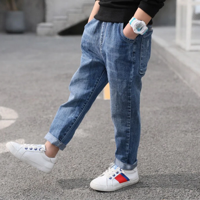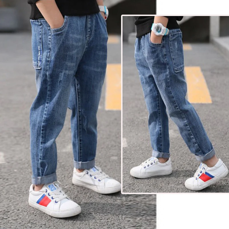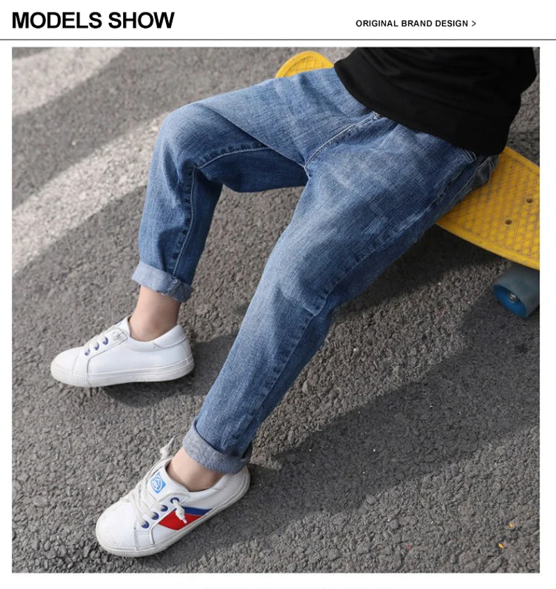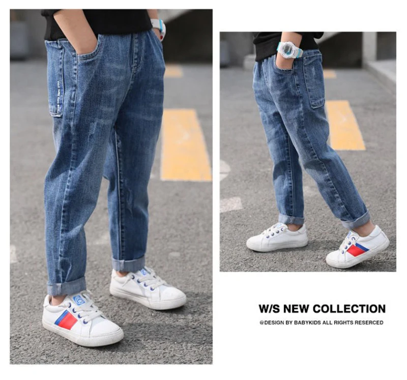 Джинсы для мальчиков, на веснуосень, с эластичным поясом, От 5 до 13 лет