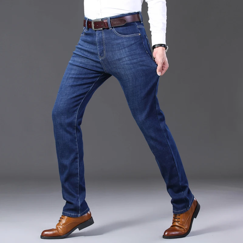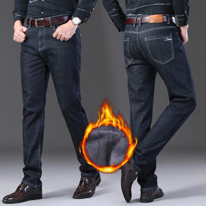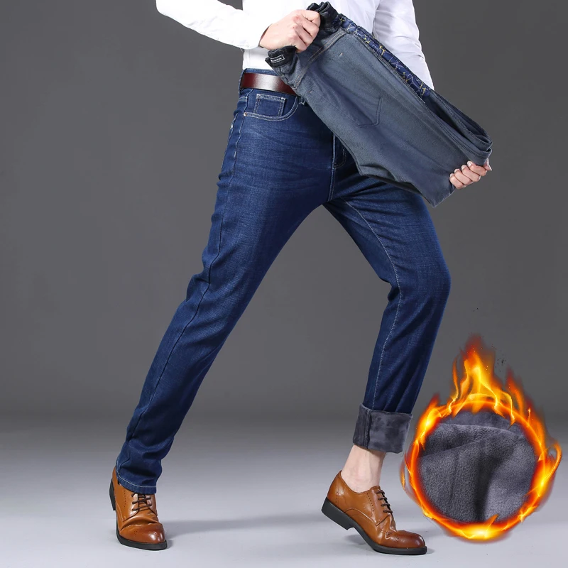 NIGRITY мужские теплые флисовые джинсы стрейч повседневные Прямые толстые джинсовые фланелевые джинсы мягкие брюки