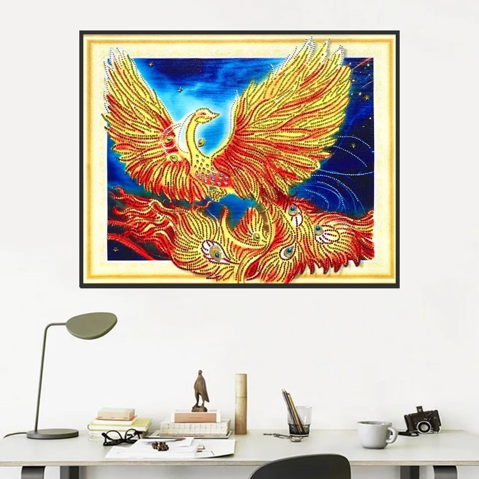Алмазная живопись с изображением Феникса, вышивка крестиком особой формы, набор для алмазной вышивки Бриллиантовая мозаичная фигурка животного бисером