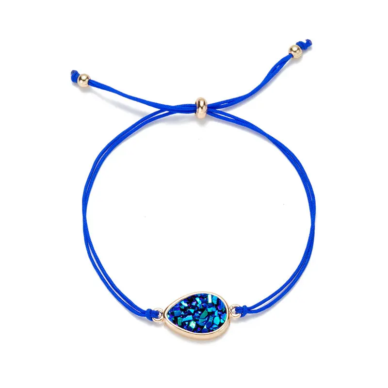2019 Мода Круглый Друза браслет Drusy искусственная Смола Друза камень Регулируемый веревочный шнур браслет ювелирные изделия для женщинподруги подарок