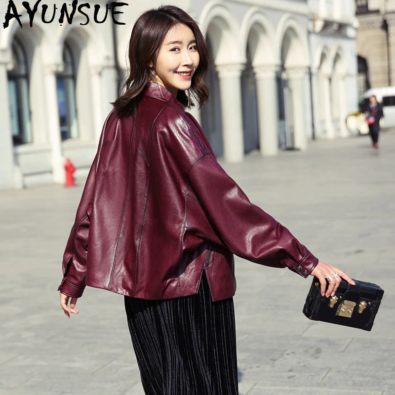 Женская куртка из натуральной кожи AYUNSUE, куртка-бомбер из 100% натуральной овечьей кожи, весна-осень 2020