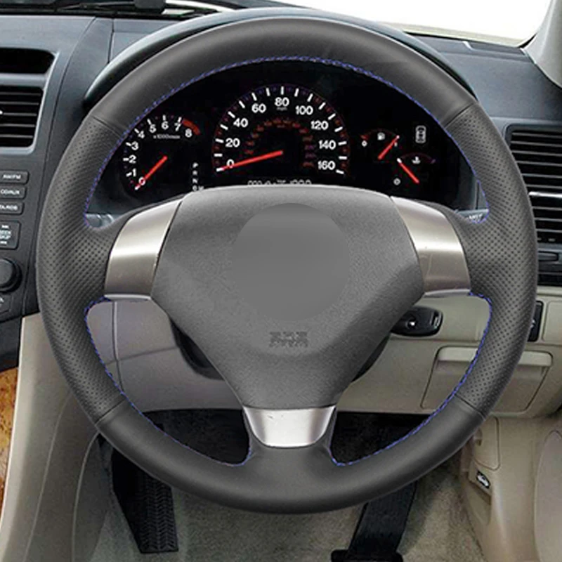 Ручное шитье, черная искусственная кожа из искусственной кожи Чехлы рулевого колеса автомобиля для Honda Accord 7 Coupe 2003-2007 (3-спицевая)