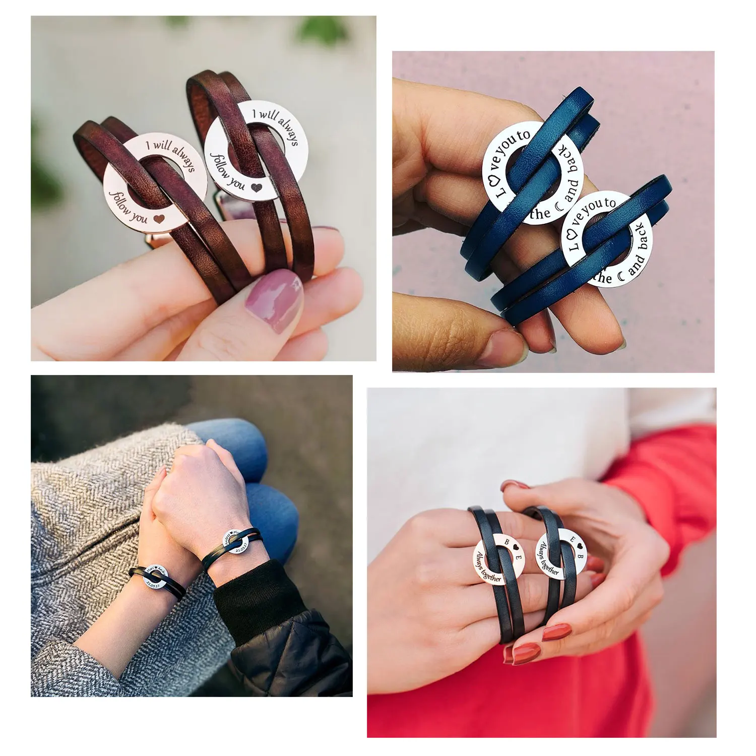 По индивидуальному заказу даты со словом рисунком именем логотипом круг браслеты для мужчин и женщин, для влюбленных, подарки из натуральной коровьей кожи с магнитом браслет ювелирные изделия SL-140