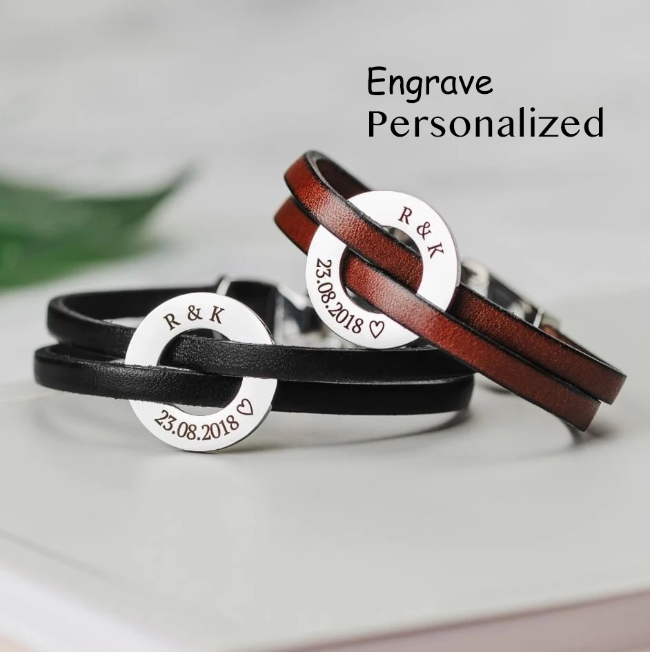 Материалы: нержавеющая сталь, кожаОписание:1. Может быть выгравирован с обеих сторон кольца2. Может гравировать графику, фразы, текст, буквы, символы, координаты, электрокардиограмму, звуковые волны и т. д. (бесплатный дизайн и гравировка)3. Идеальный подарок для влюбленных, друзей и семьи.*** Посылка ***1x Браслет