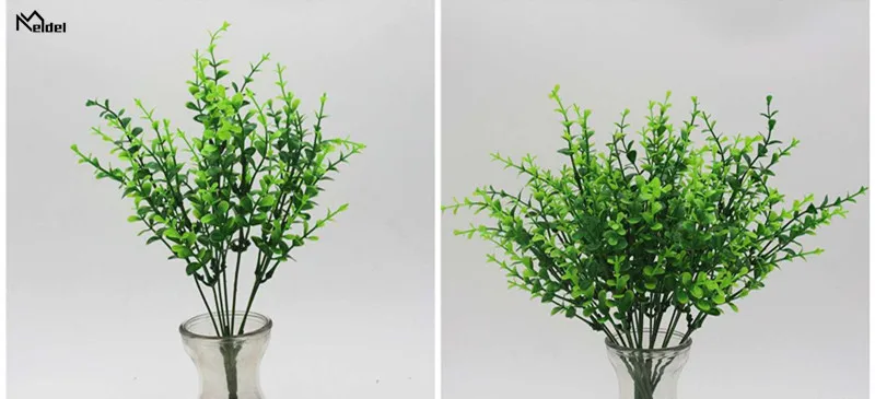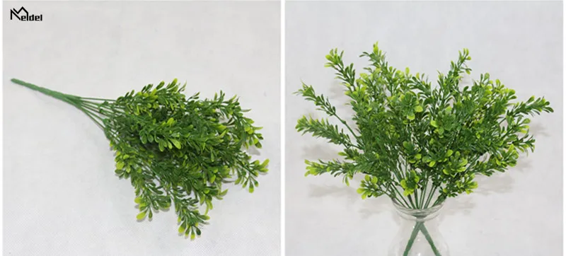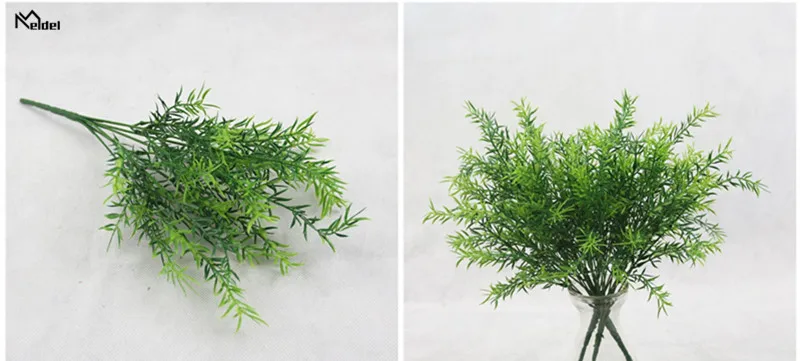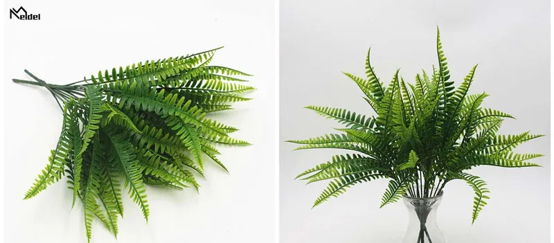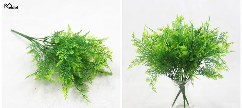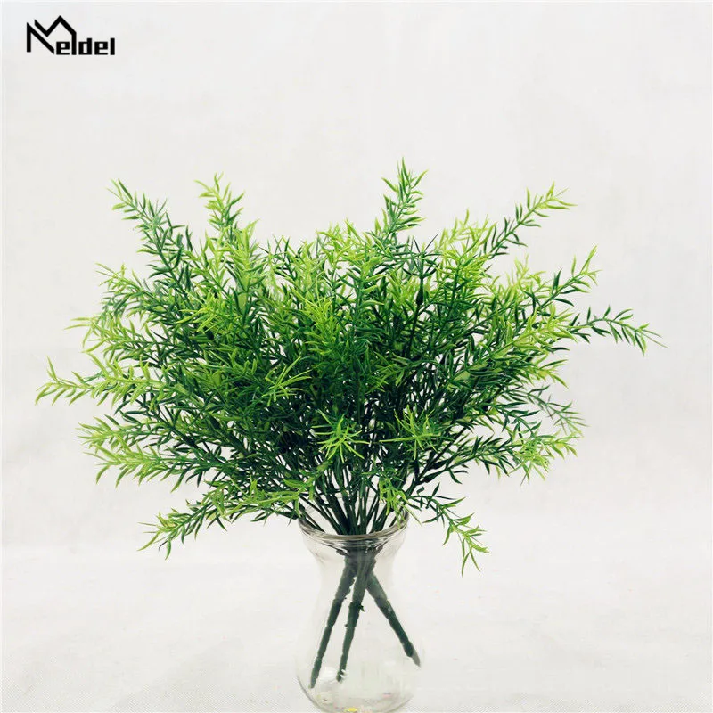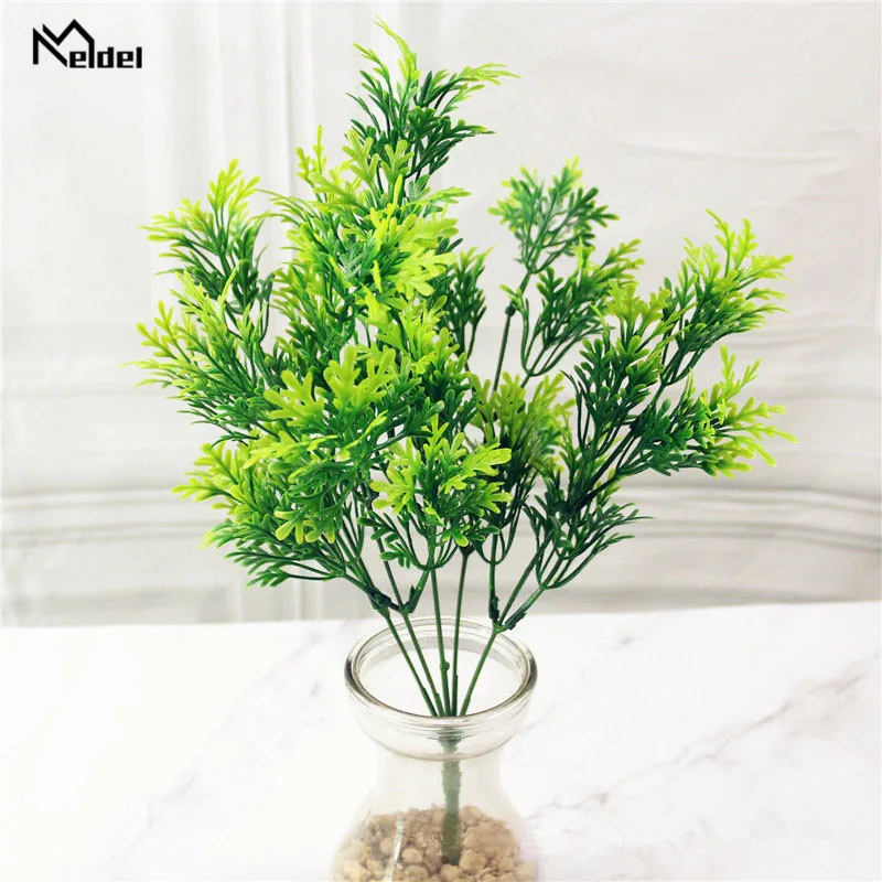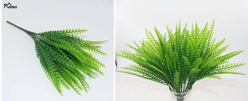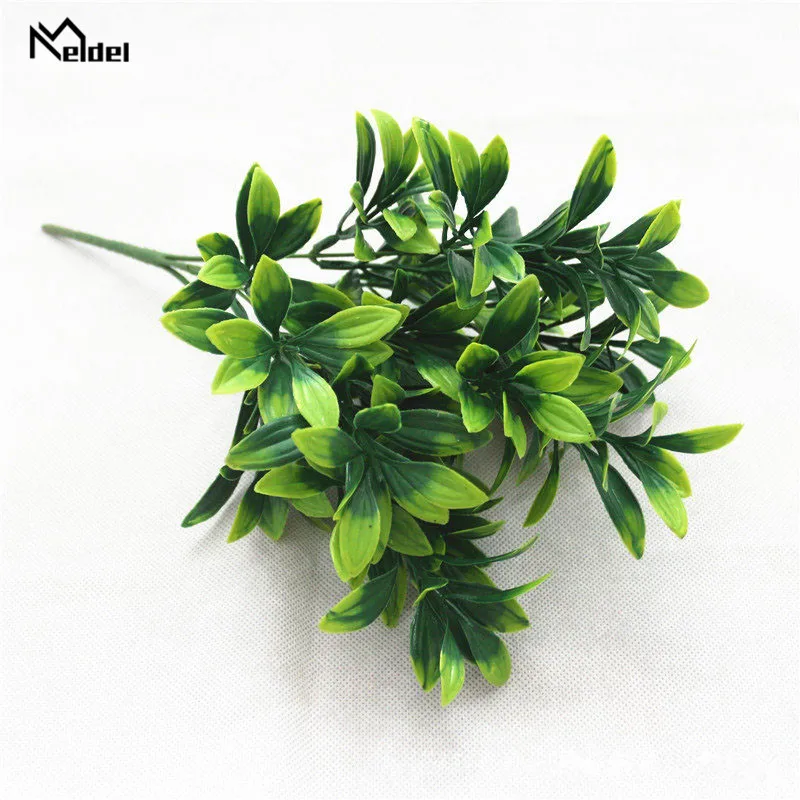 Искусственное растение Meldel, 7 вилок, имитация пластика, папоротники, трава, зеленые листья, искусственные растения для дома вечерние, сада, уличные украшения