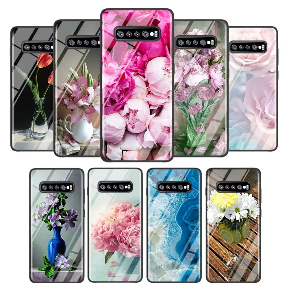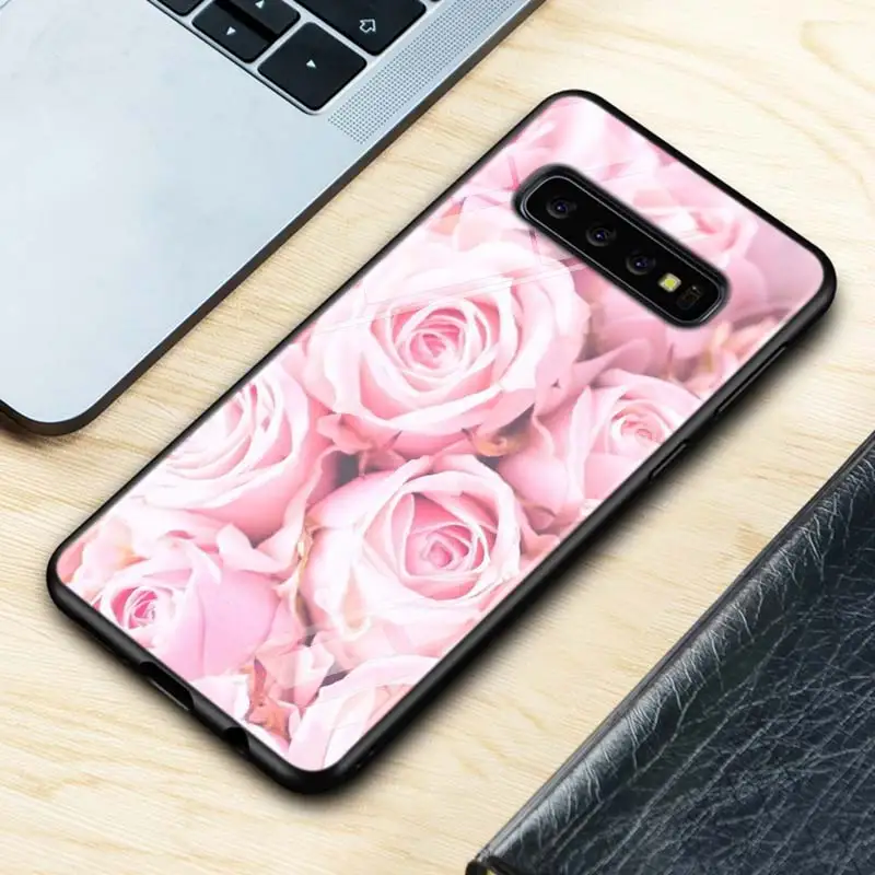 Глянцевый чехол для телефона Samsung Galaxy Note 10, 9, 8 Pro, S10e, S10, 5G, S9, S8, S7 Plus, с розовым цветком
