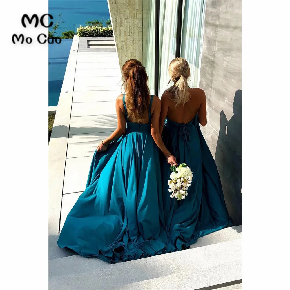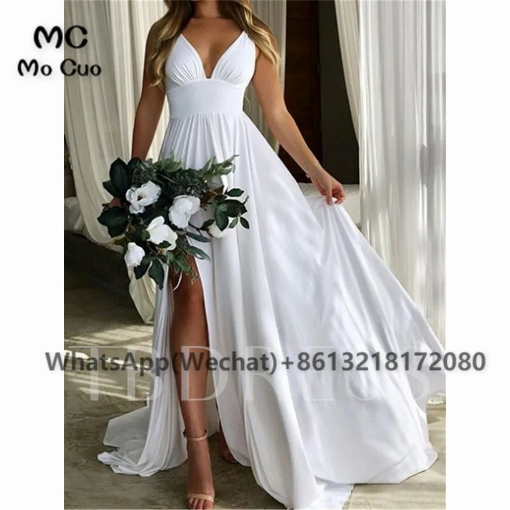 Платье подружки невесты с v-образным вырезом и разрезом спереди, шифоновое платье подружки невесты с открытой спиной