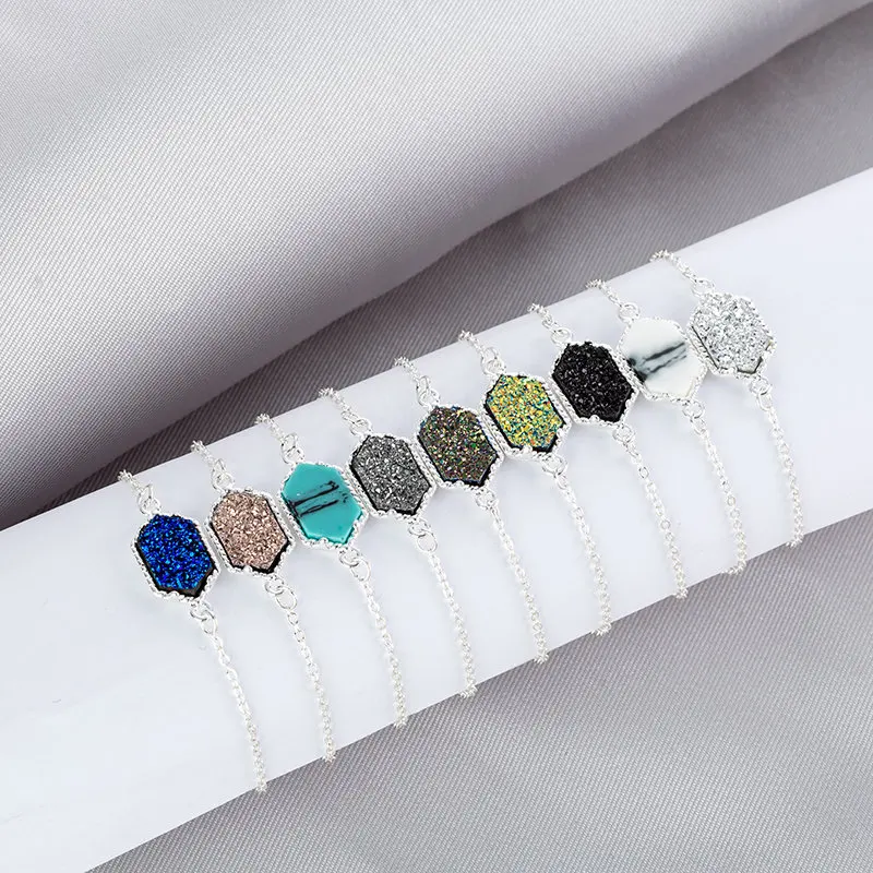 Цепочка с кулоном в виде шестиугольной колонны из натурального камня