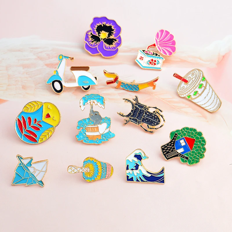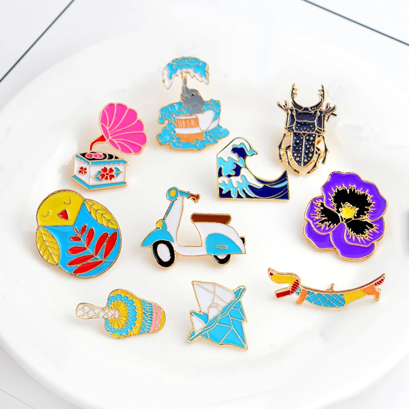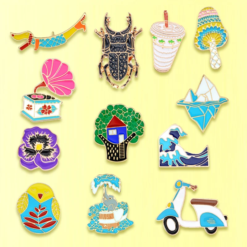 Женская Милая брошь, волна айсберга, гриб, Сова, слон, собака, цветок, фонограф, дерево, насекомое, мотоцикл, эмалированные булавки, значок, подарок