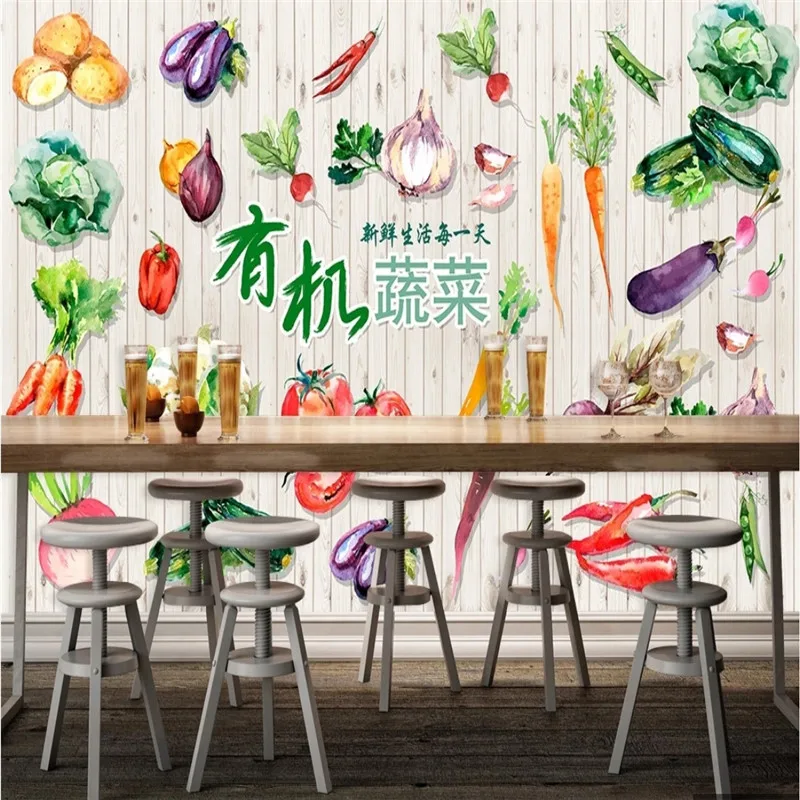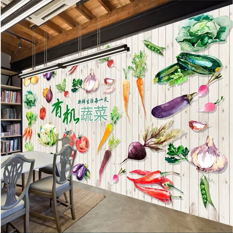 Свежие органические овощи удобный магазин супермаркет Ресторан обои 3D акварельный текст можно изменить настенная бумага