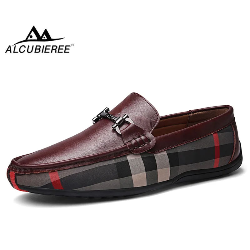 Мужские лоферы ALCUBIEREE, повседневная обувь для вождения, дышащие мокасины на плоской подошве, удобная обувь из натуральной кожи