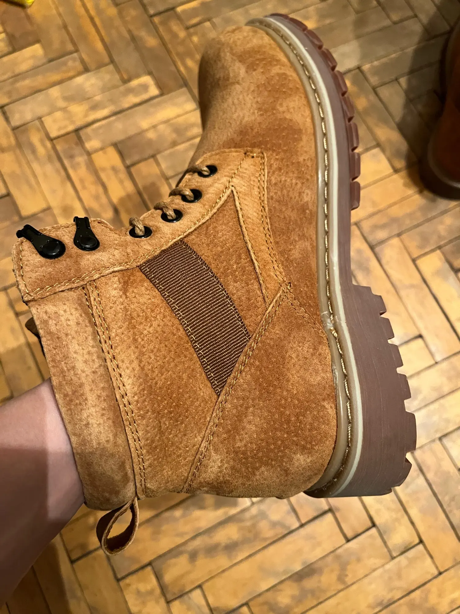 Наконец-то сегодня получил ботинки, ожидания отличные. Качество лучшее, никаких закроек и косяков. Заказывал 42 размер, продавец отправил 43, в принципе тот же размер, стельку подложил и носки теплые одел, и все. Спасибо продавцу!