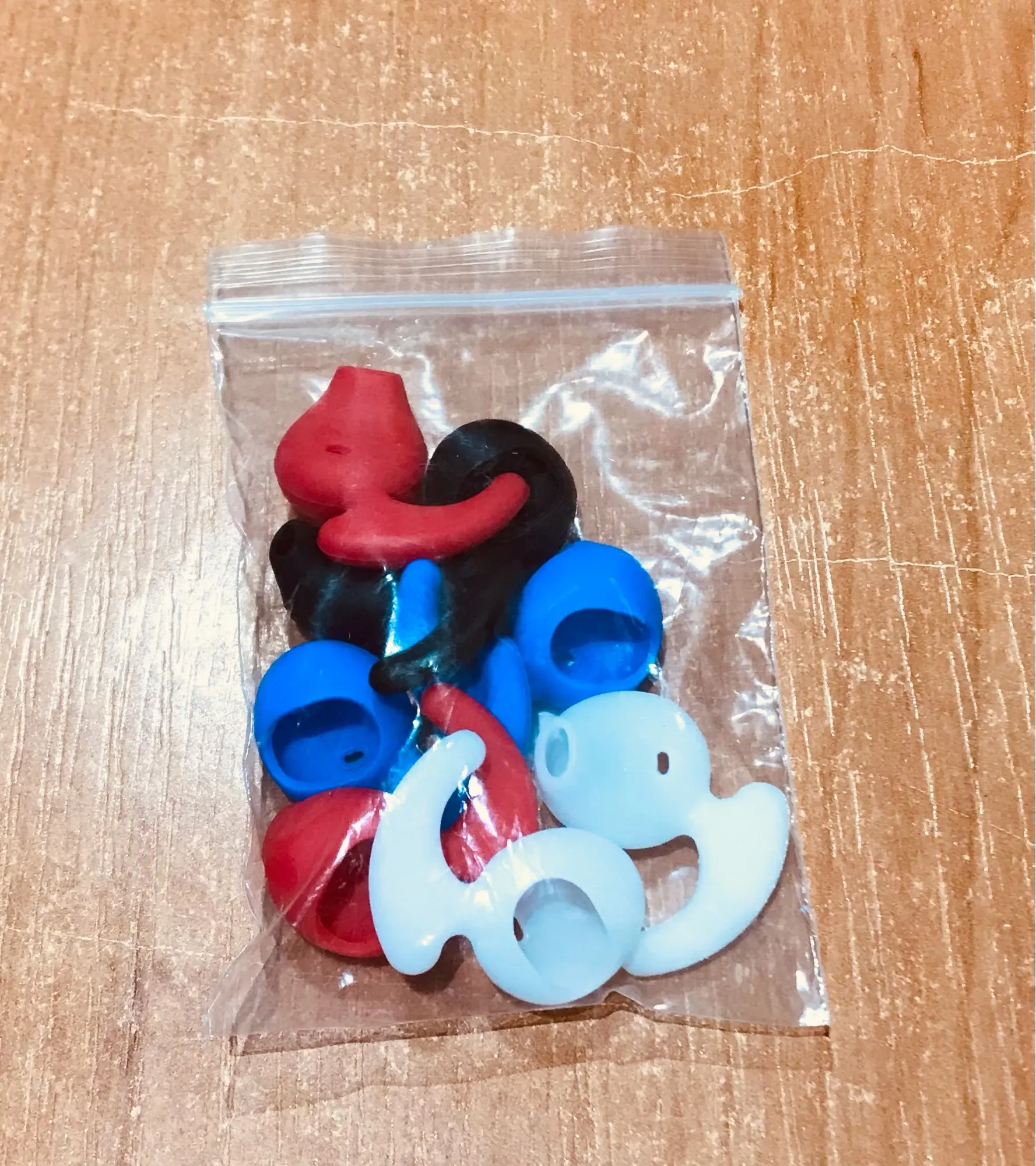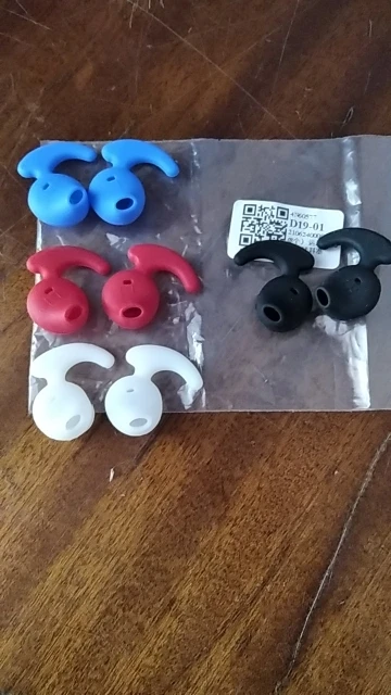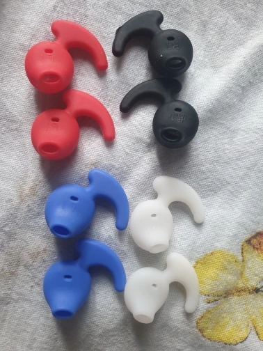 4 цвета приходят, они такие же, как на картинке. Я купил их, потому что те из samsung-это те, которые мне подходят, но я использовал их с некоторыми беспроводными xioami, и они могут быть надеты, но мои уши очень маленькие, и это беспокоит меня в конце концов, я не буду использовать их с этими... Я оставлю их для других samsung.