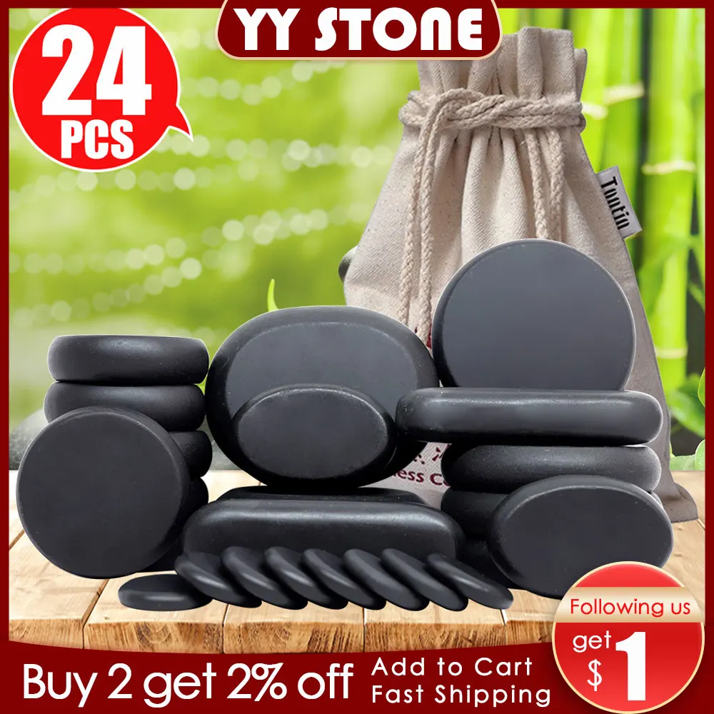 Набор из 24 шт.компл. горячего массажа, энергетического базальтового камня для тела, салона красоты, спа с толстой тканевой теплой сумкой, средством для здоровья и облегчения боли в спине