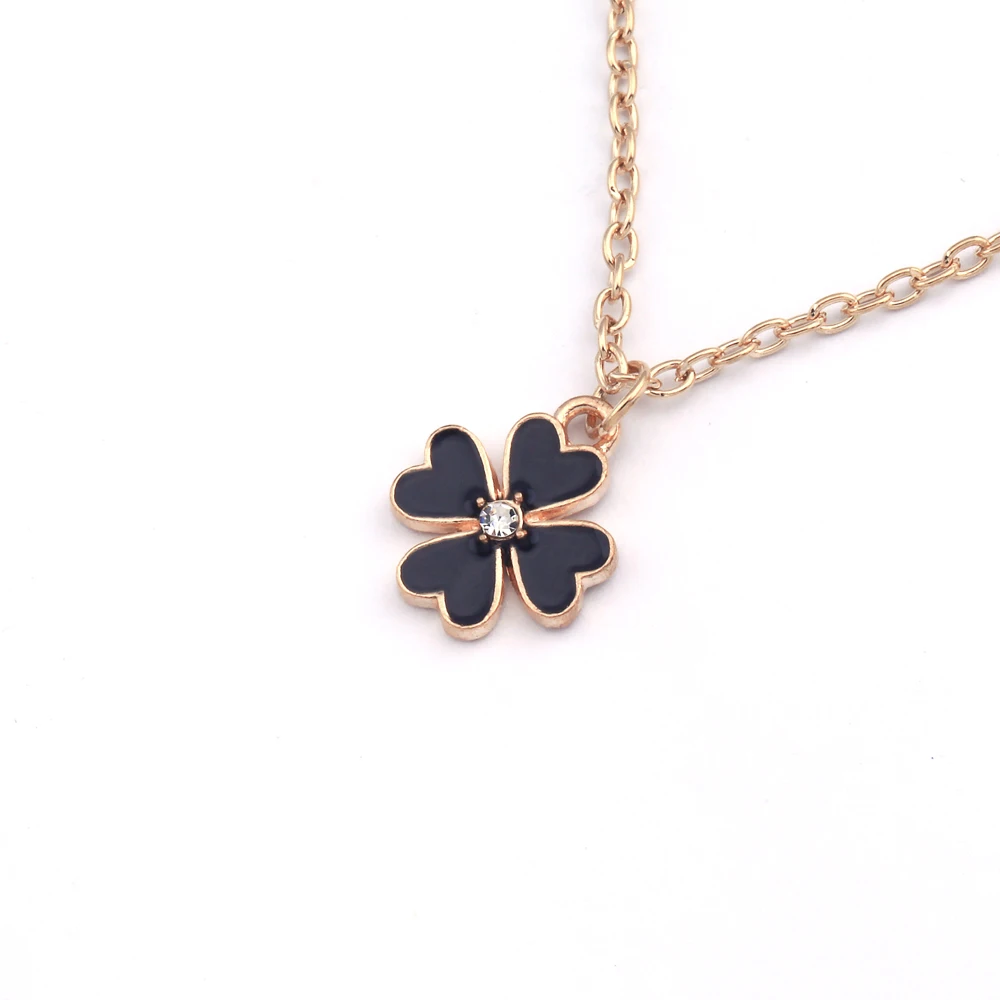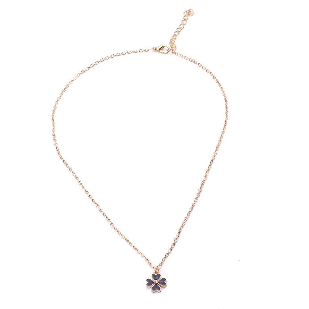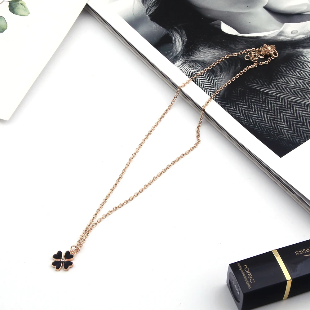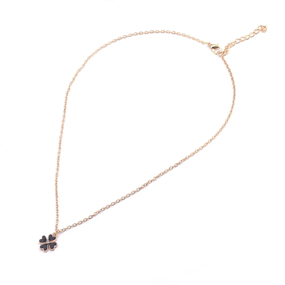 Простые Стильные черные ожерелья и кулоны для женщин, женская бижутерия, колье, брелок на День святого Валентина, эмалированный в форме клевера