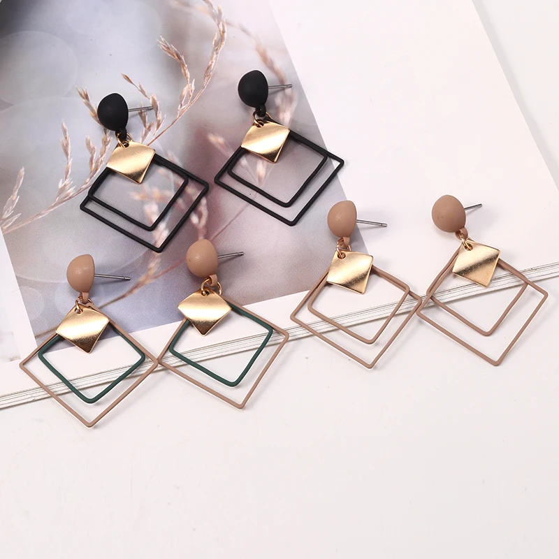 Корейский, геометрической формы, квадратные Висячие серьги для женщ...