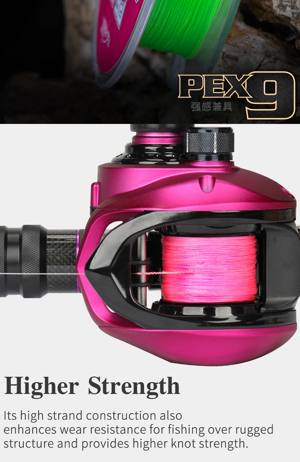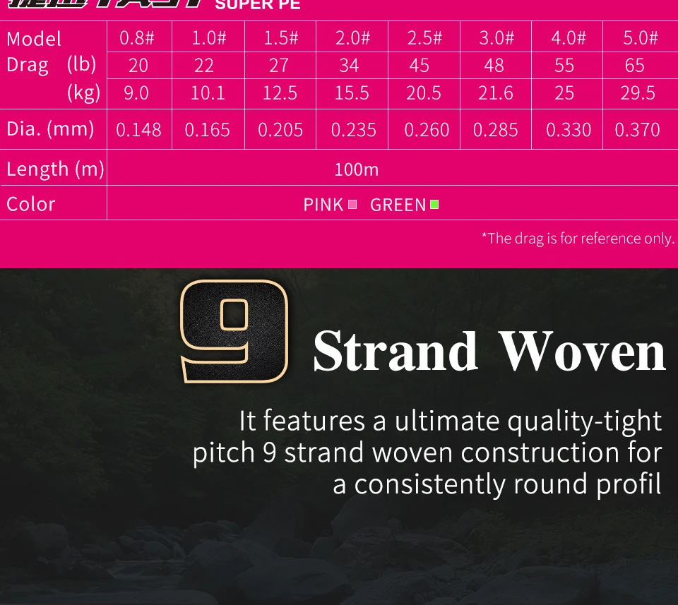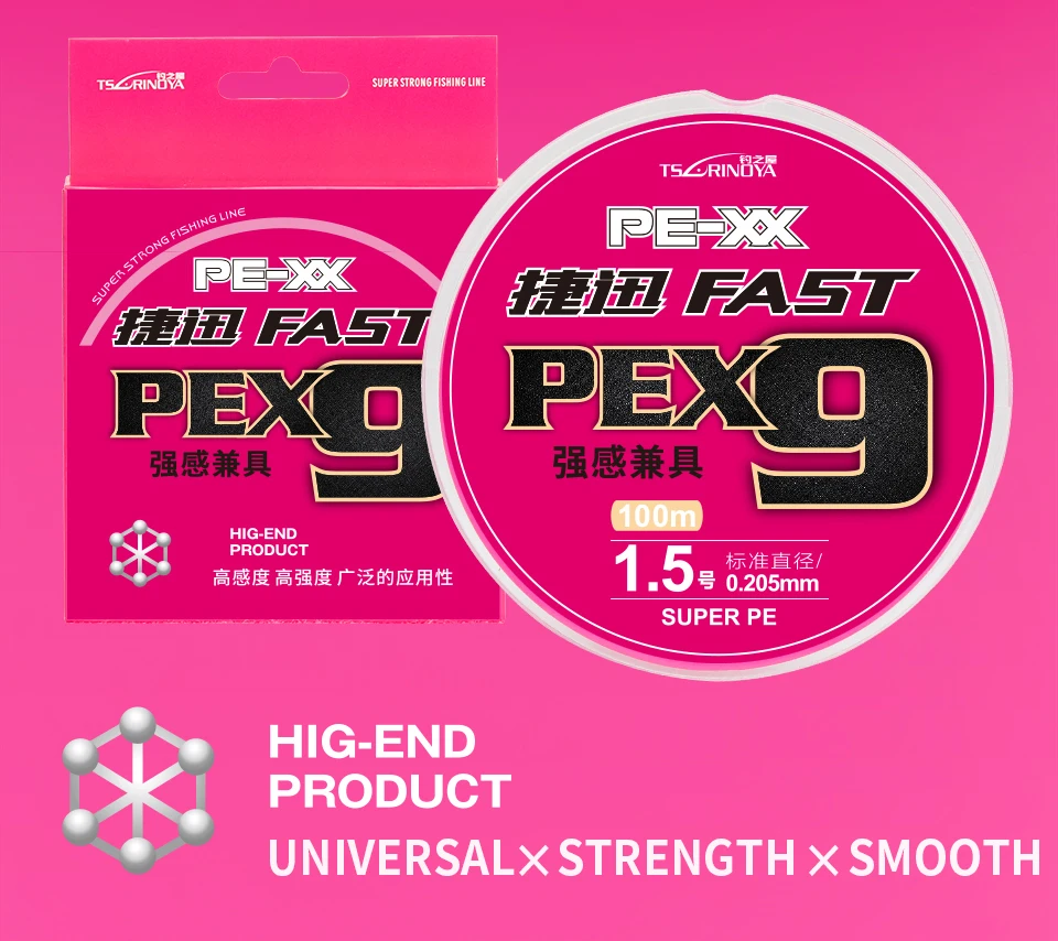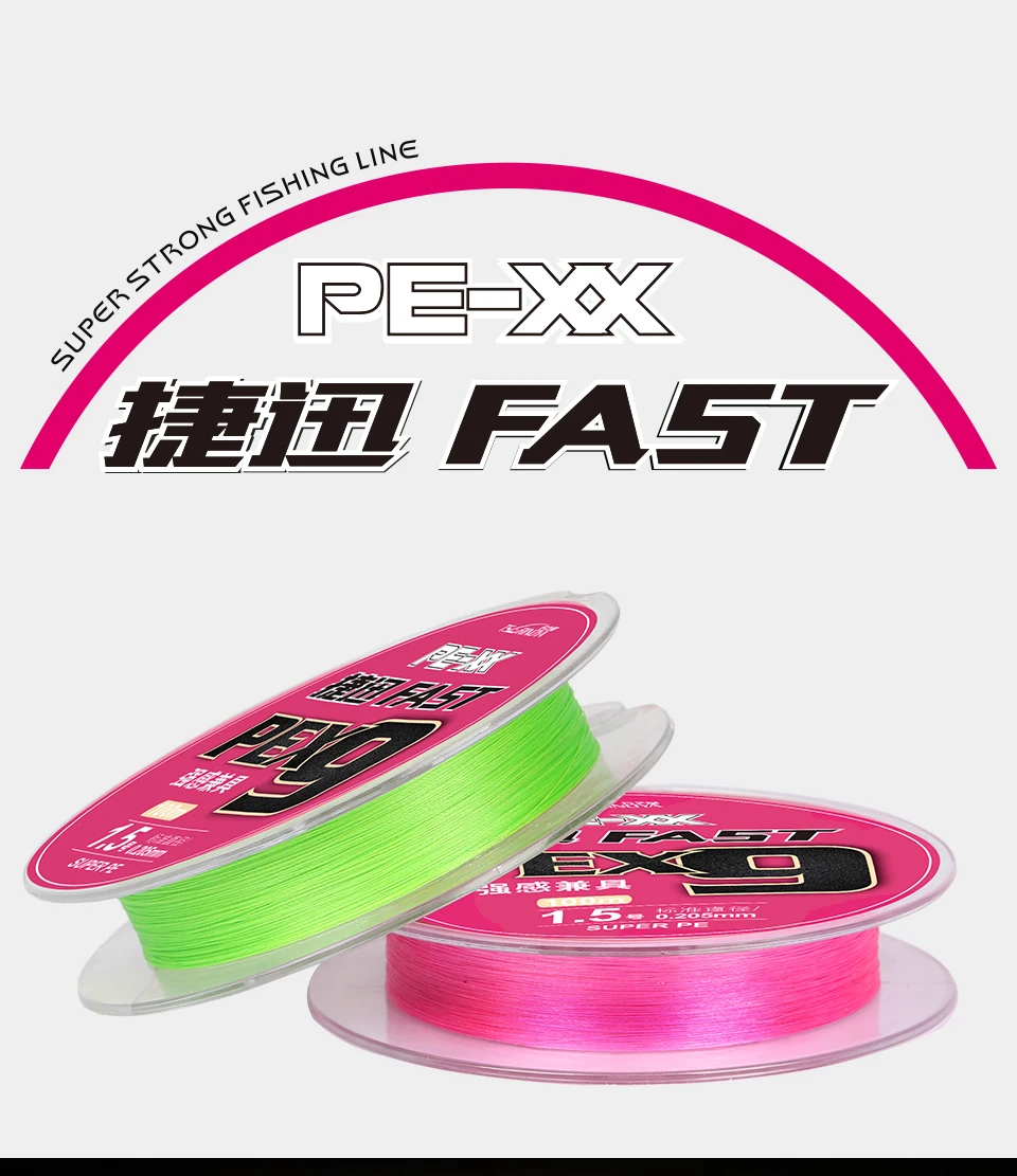 Леска рыболовная из ПЭ, 9 нитей, 100 м, 20-65 фунтов
