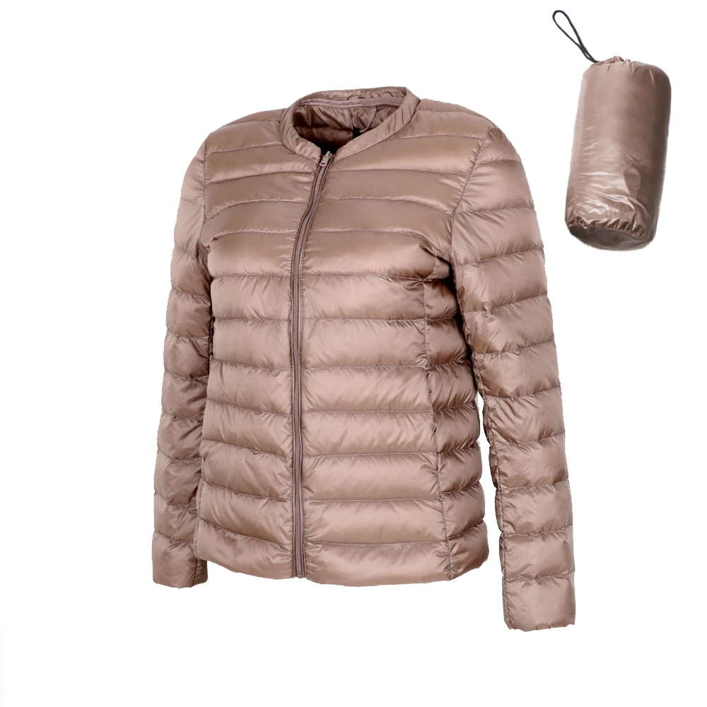 Женский сверхлегкий пуховик без воротника, на молнии, с подкладкой из перьев, ветровка, верхняя одежда