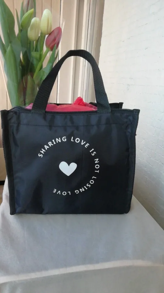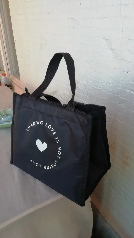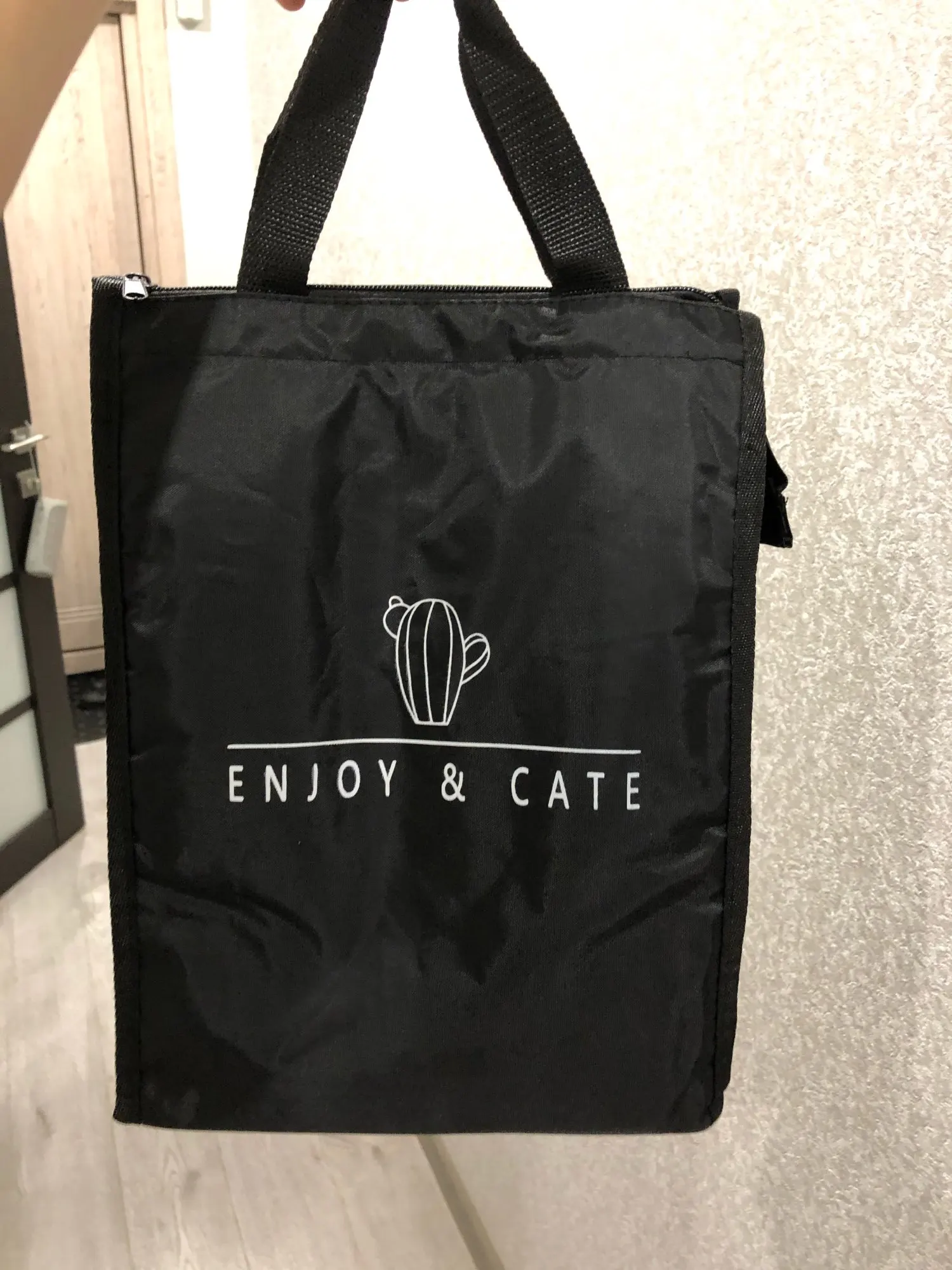 Это хорошая сумка с толстым покрытием снаружи. Ваша еда будет в безопасности в этой сумке, и я даже думаю, что она немного водонепроницаемая. Проблема только в том, что текст на сумке отличается от текста на фотографии.