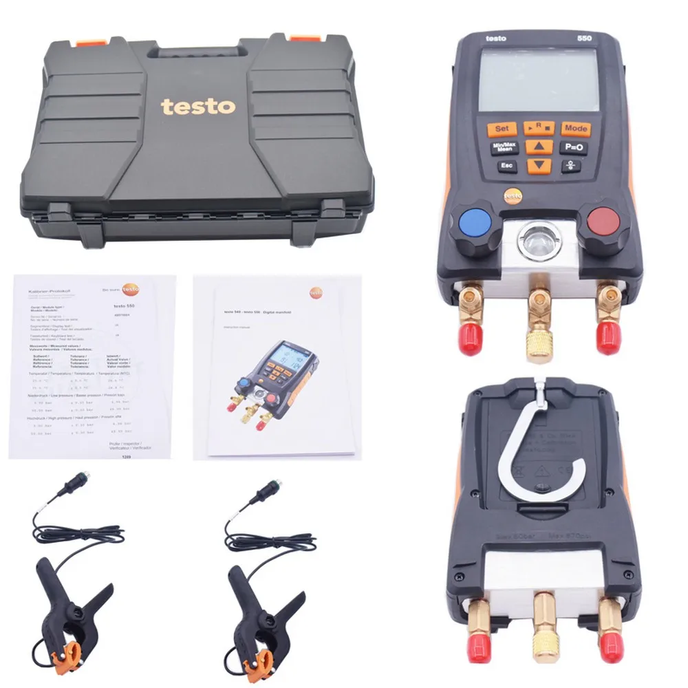 Цифровой манометр для трубопровода, холодильное оборудование Testo 550, электромагнитный набор с 2 шт. зондами-зажимами 0563 1550, цифровой манометр