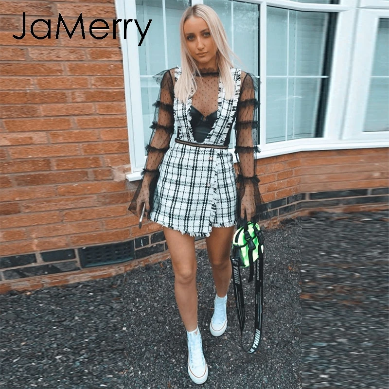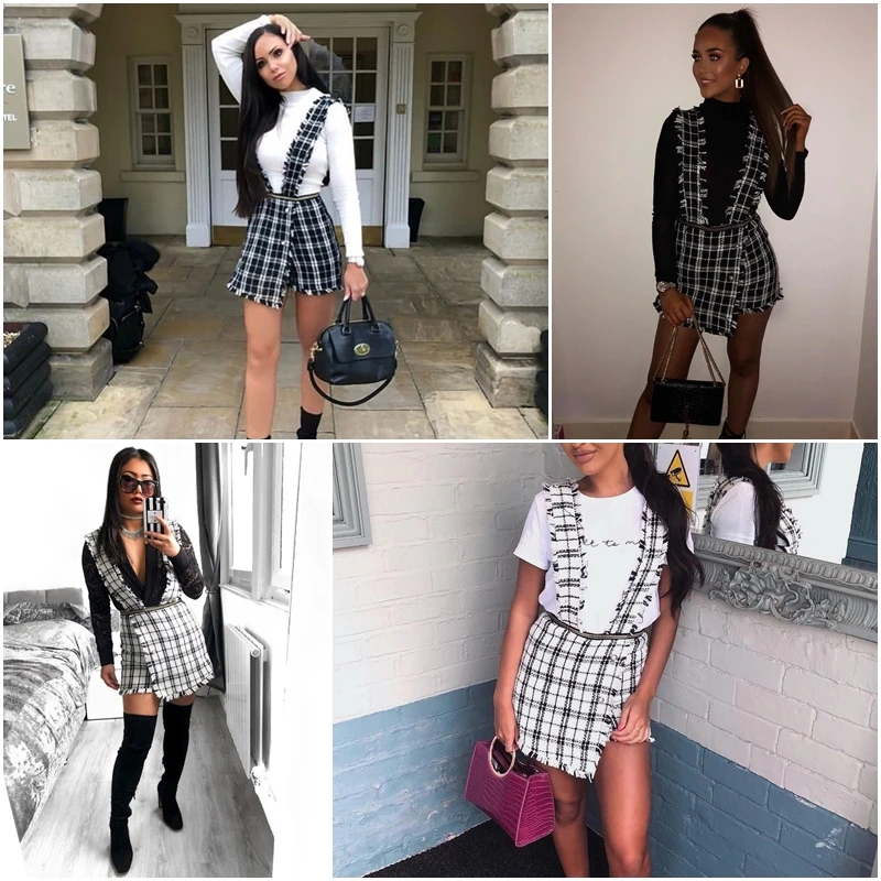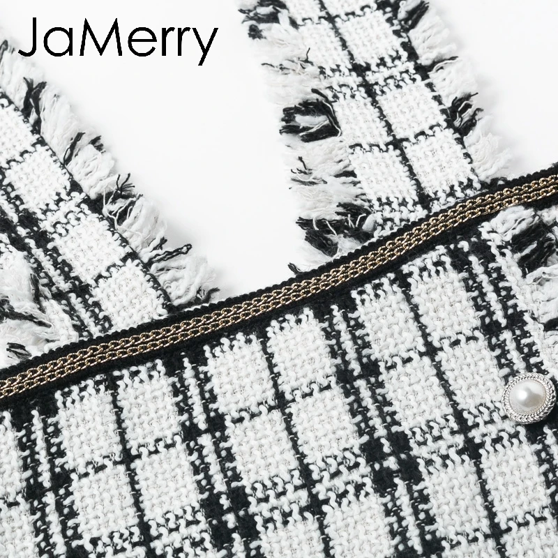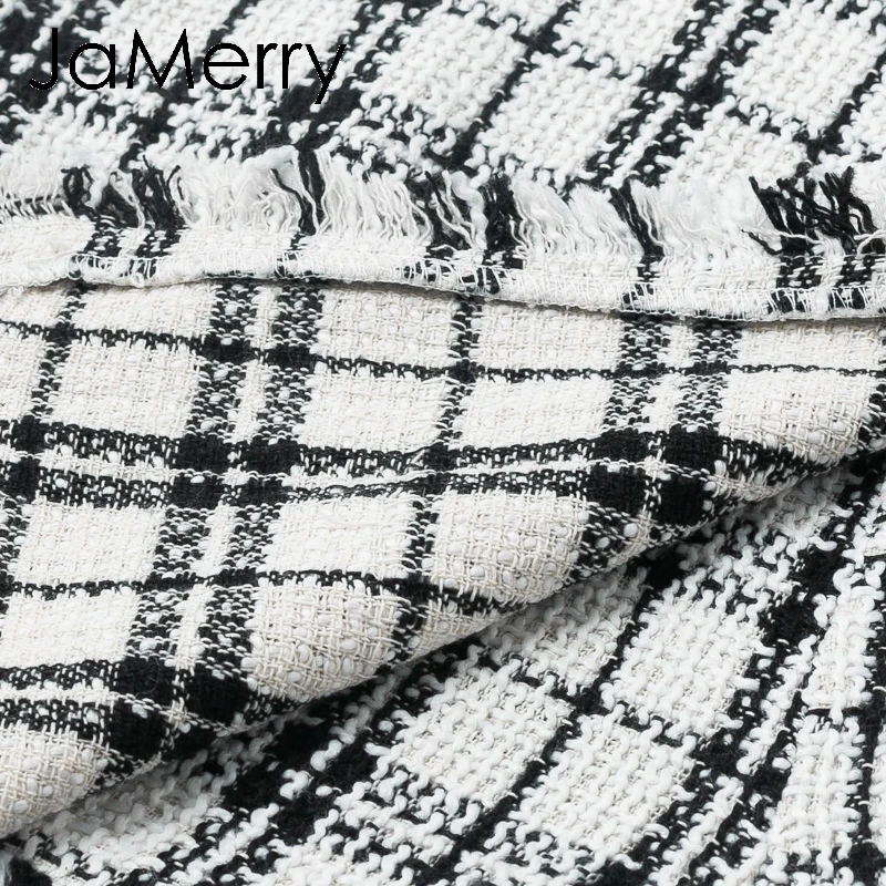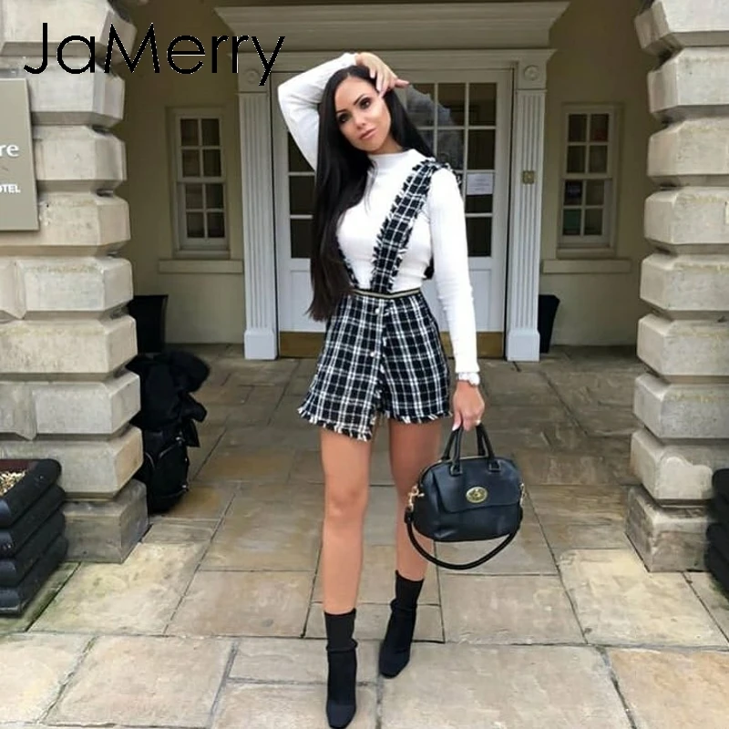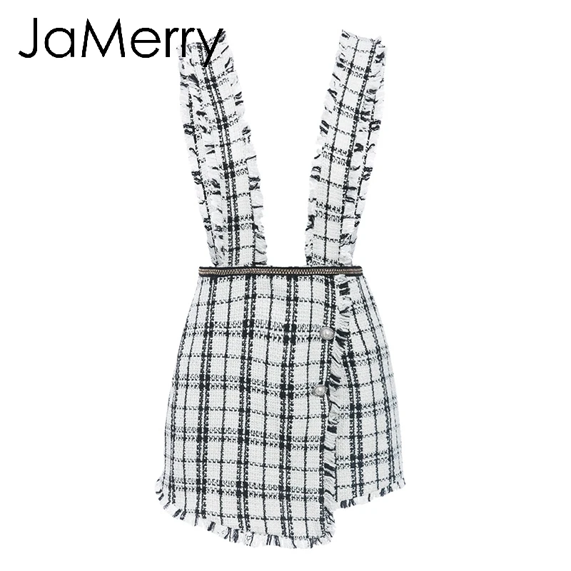 Женская твидовая клетчатая короткая юбка JaMerry, винтажная Повседневная вечерняя мини-юбка на тонких бретелях для осени и зимы