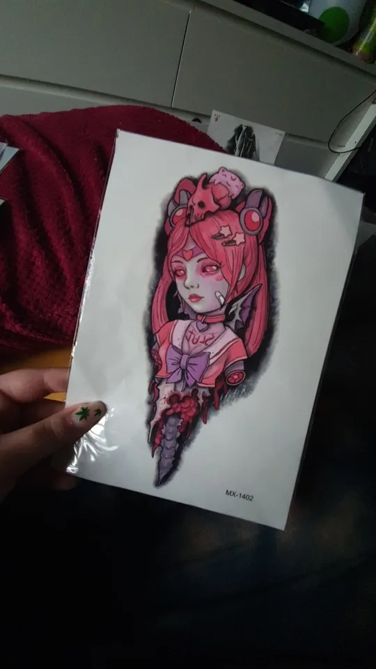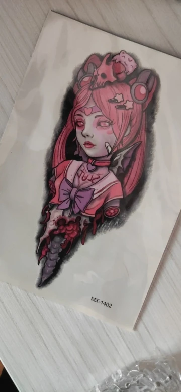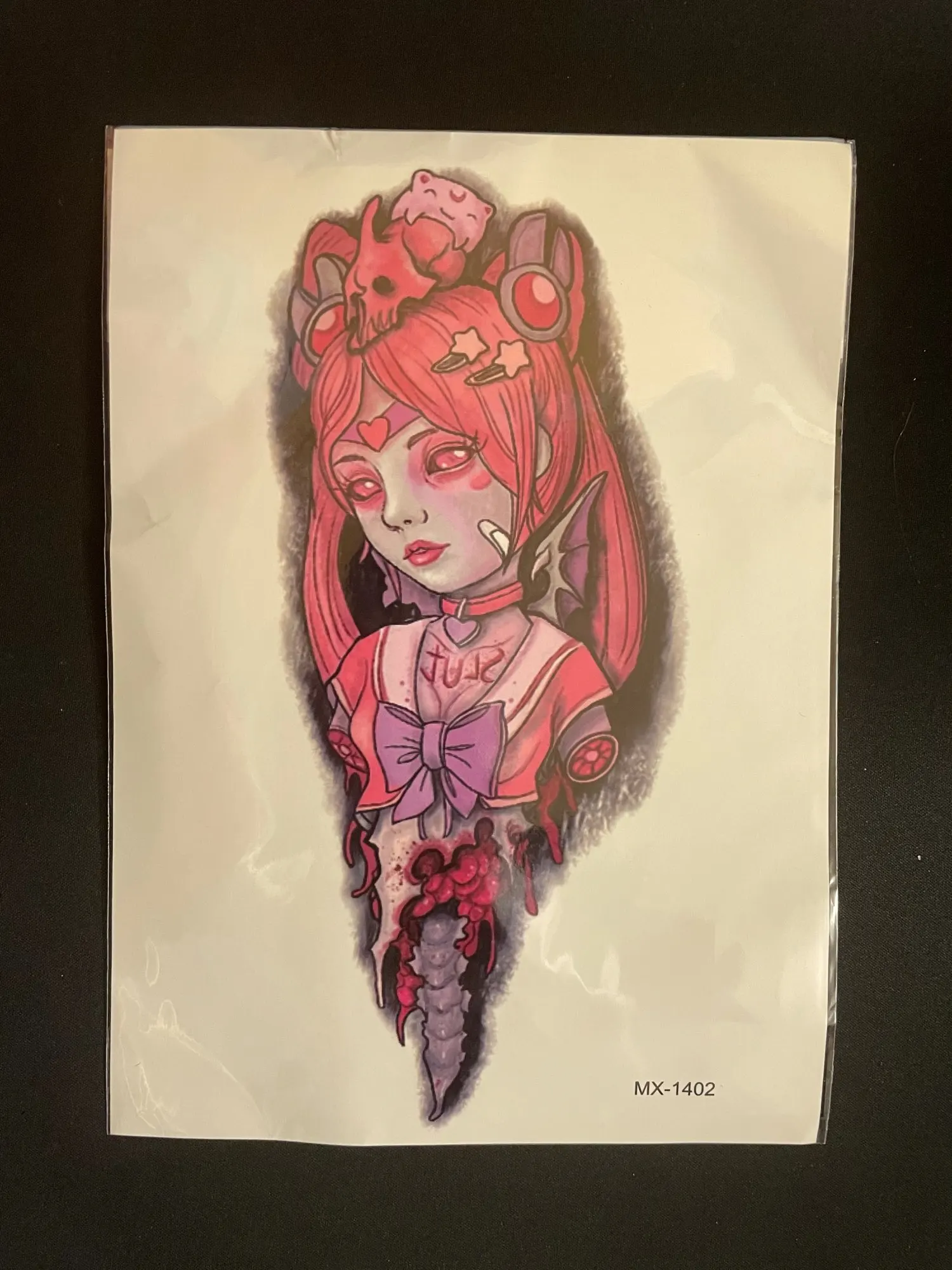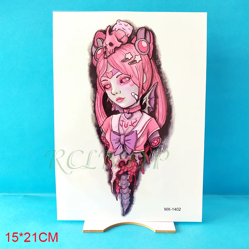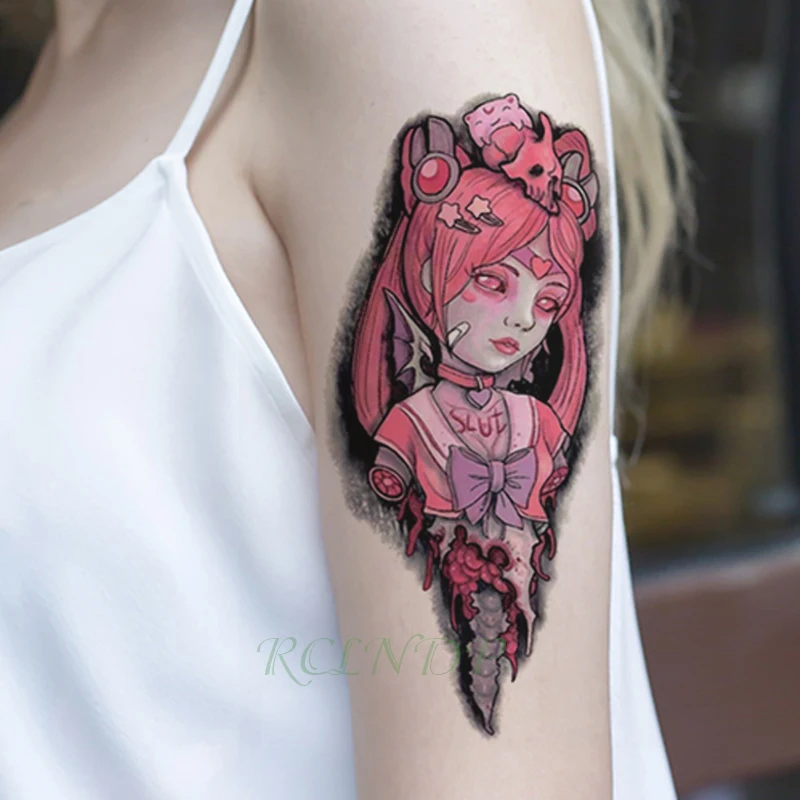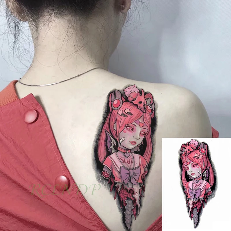 Водостойкая временная татуировка, мультяшная японская девушка, наклейка бантик, флеш-тату, поддельные татуировки, большая темнота, татуировки для женщин, мужчин, леди