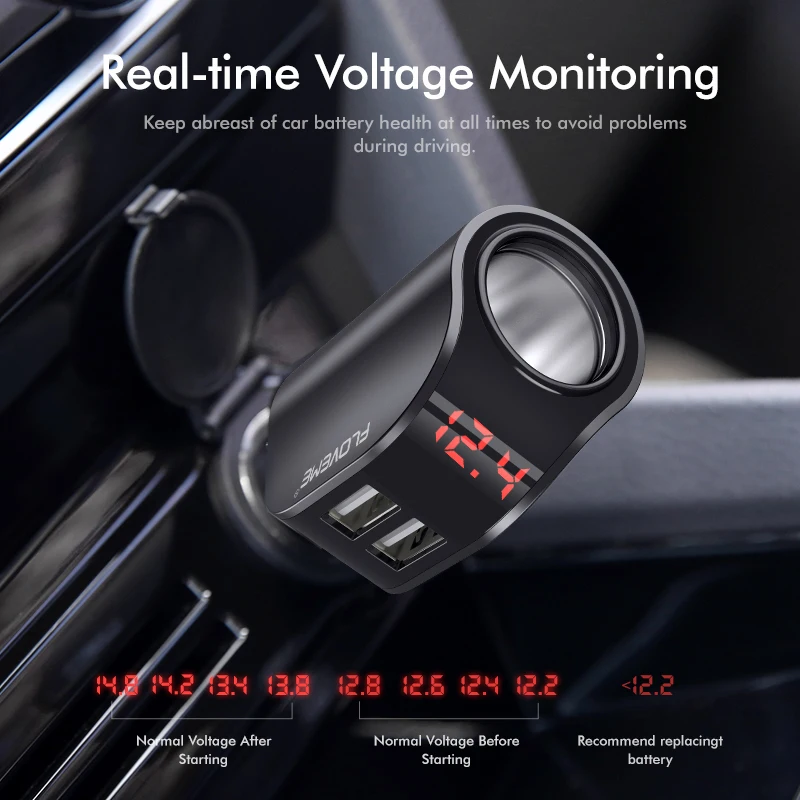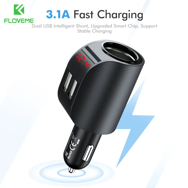 Номер моделиFLOVEME Dual USB Car Charger With Digital Display Cigarette Lighter
