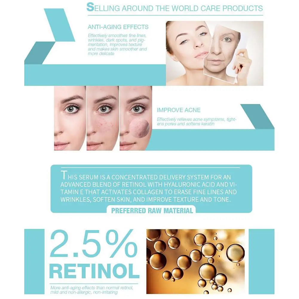 30 мл Retinol Сыворотки увлажняющий антивозрастной витамин эссенция гиалуроновой кислоты для Для женщин, увлажняющая, для лечения прыщей, контроль выработки кожного жира