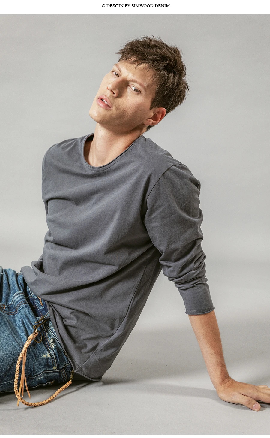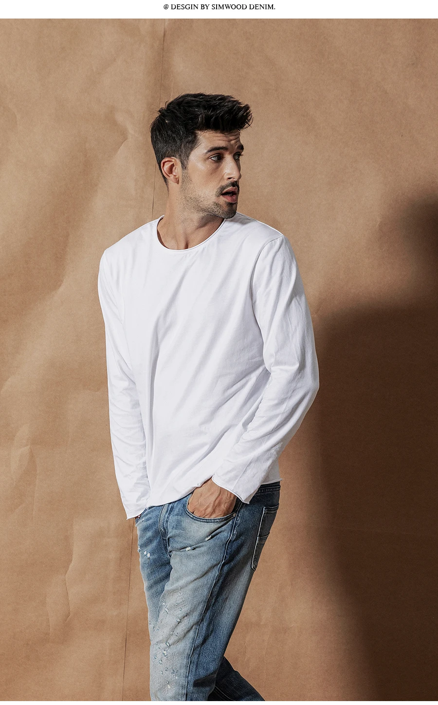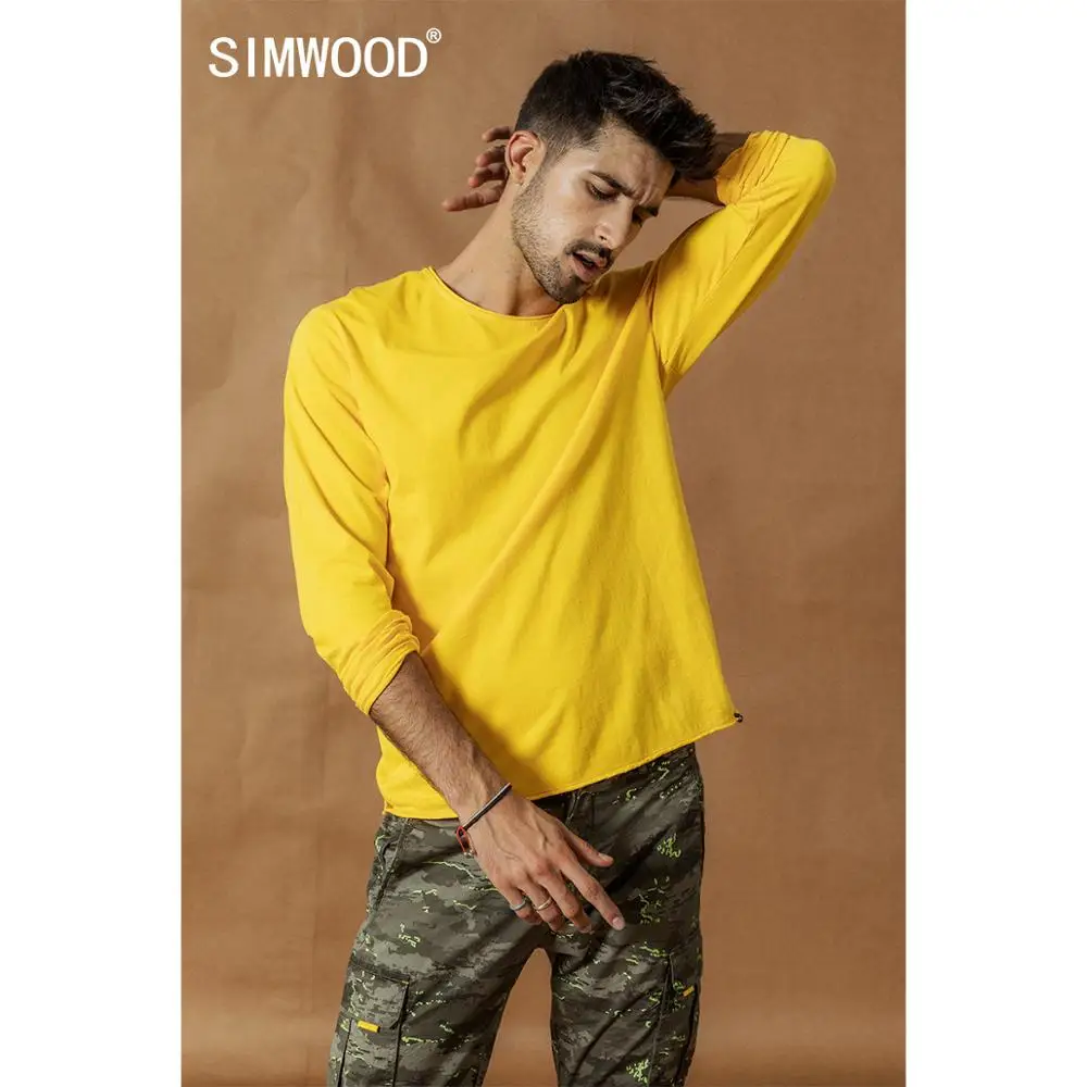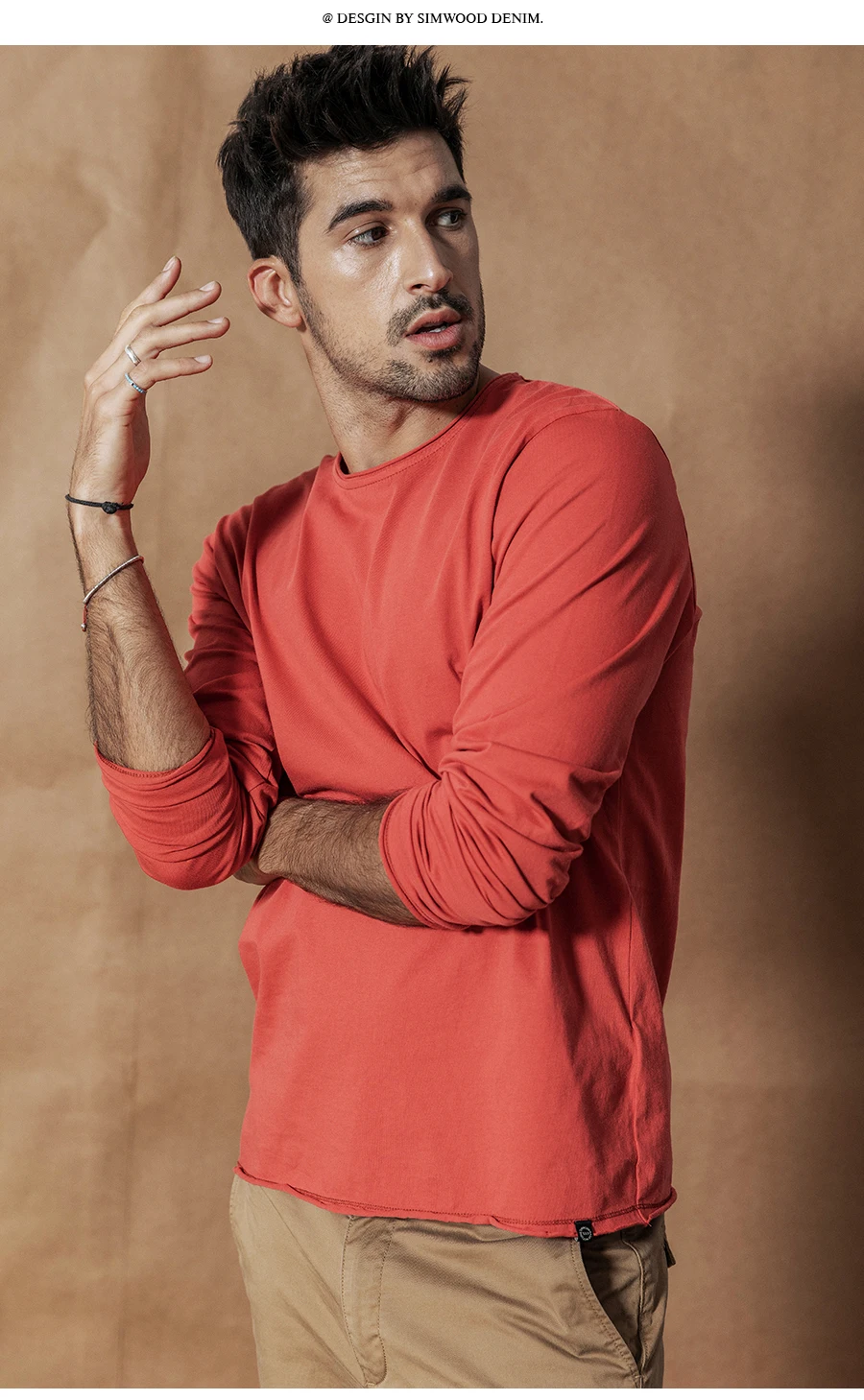 SIMWOOD 2022 Весна Зима Новая Однотонная футболка с длинным рукавом мужская футболка с необработанным рулоном текстура качество 100% хлопок топы SI980585