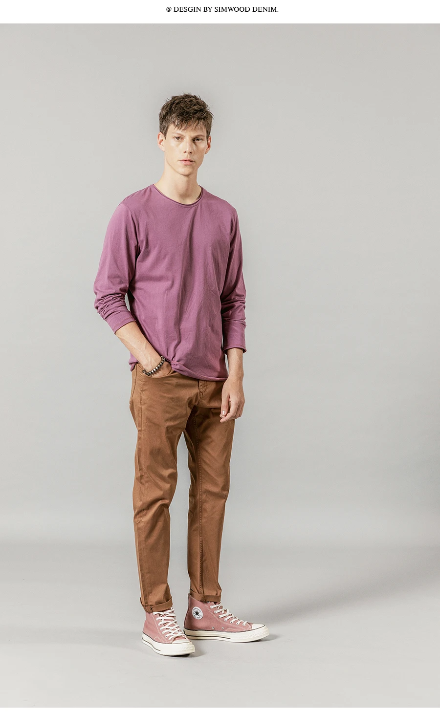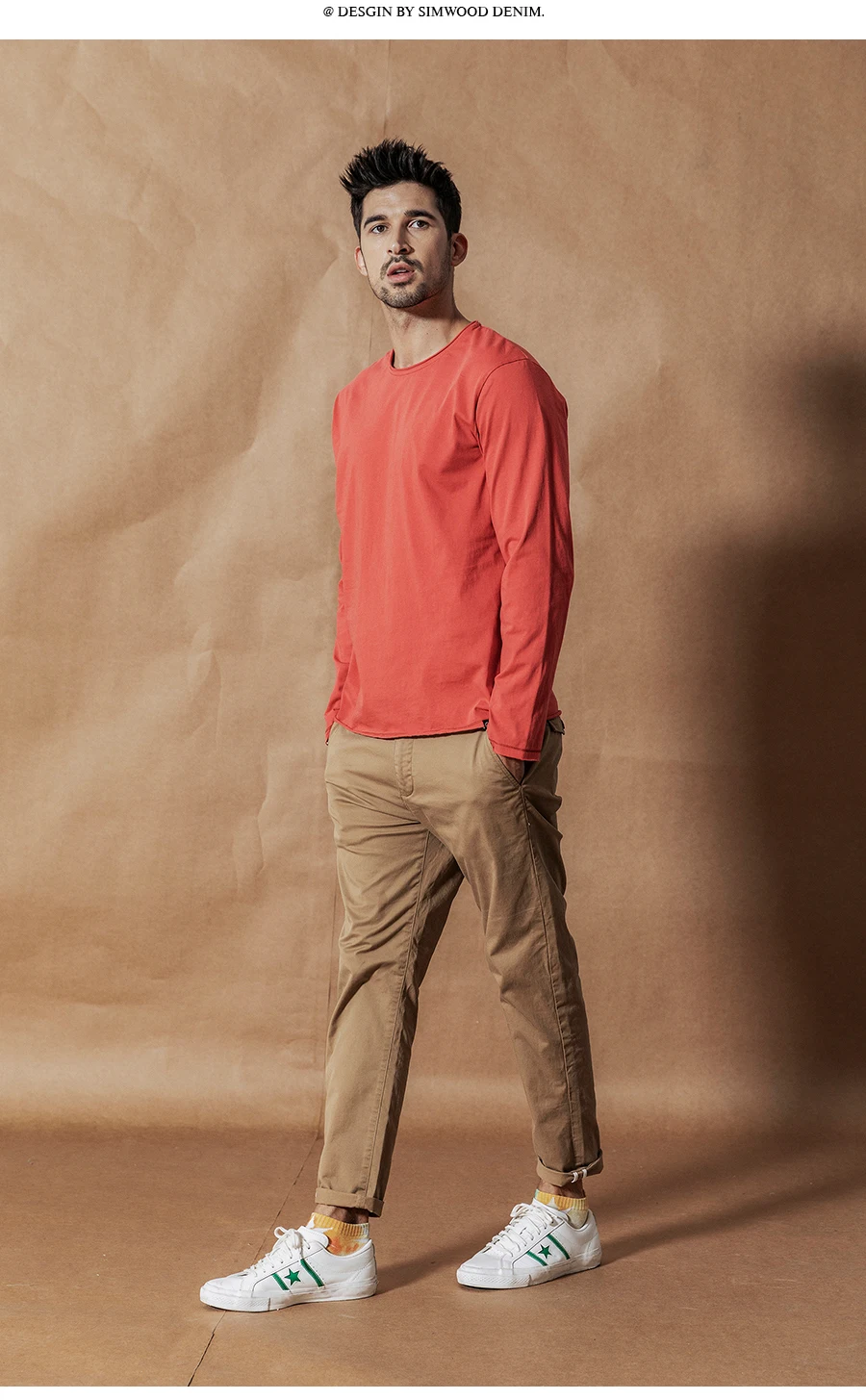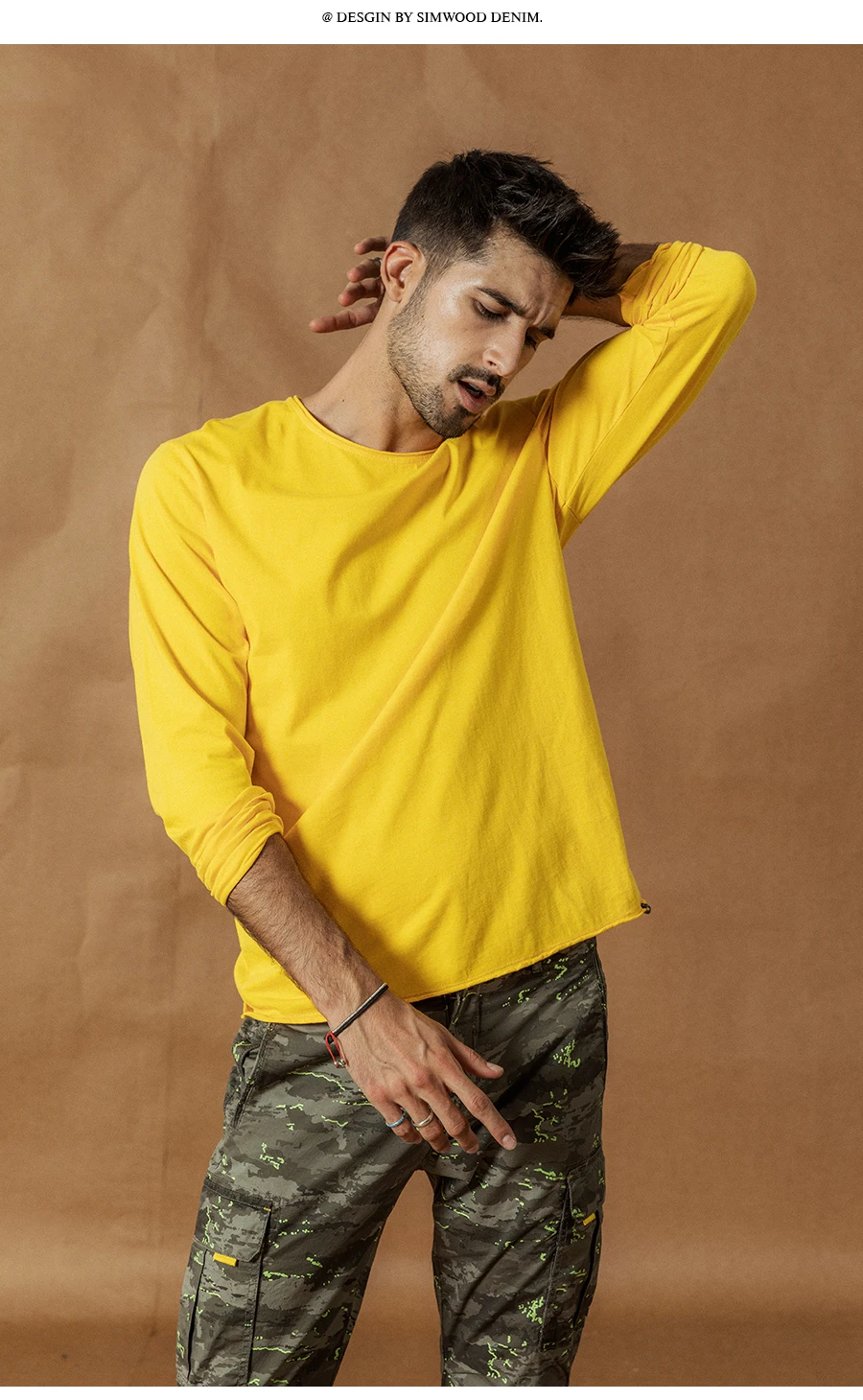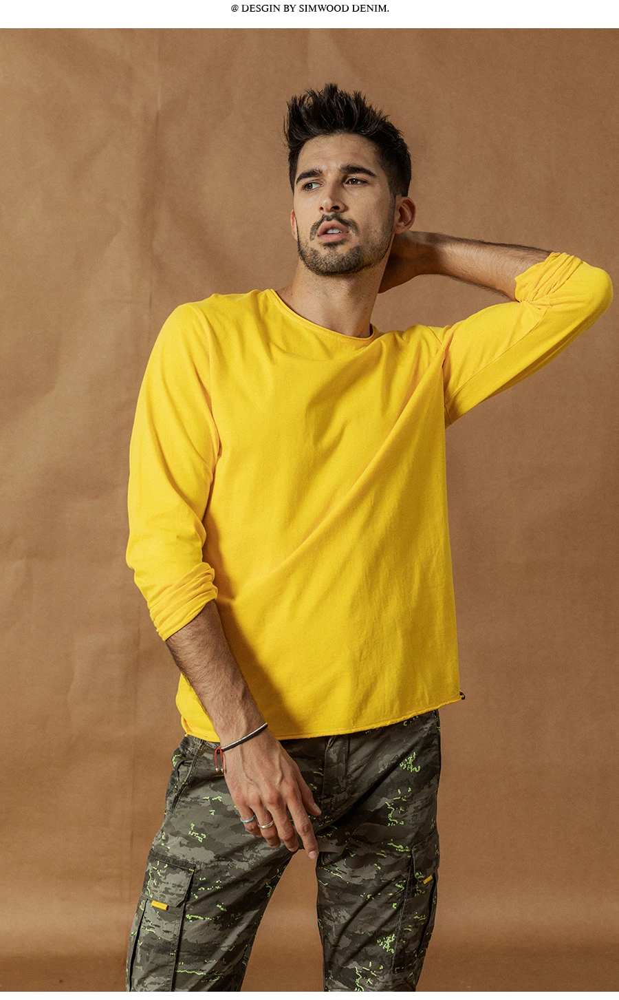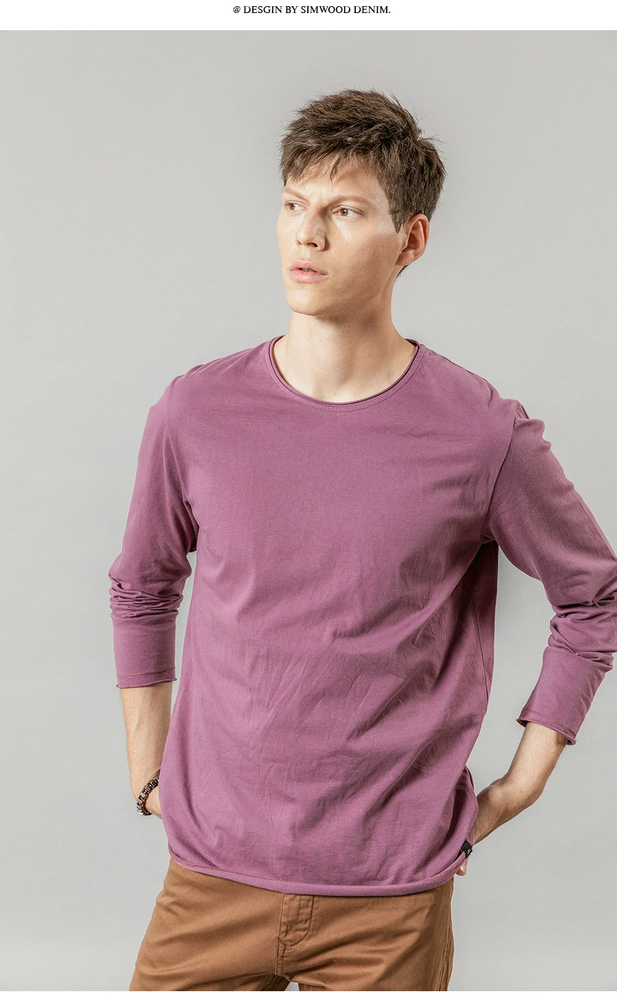 SIMWOOD 2022 Весна Зима Новая Однотонная футболка с длинным рукавом мужская футболка с необработанным рулоном текстура качество 100% хлопок топы SI980585