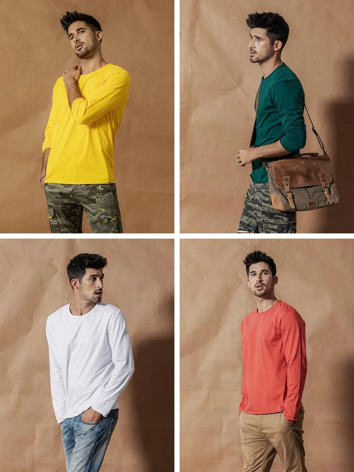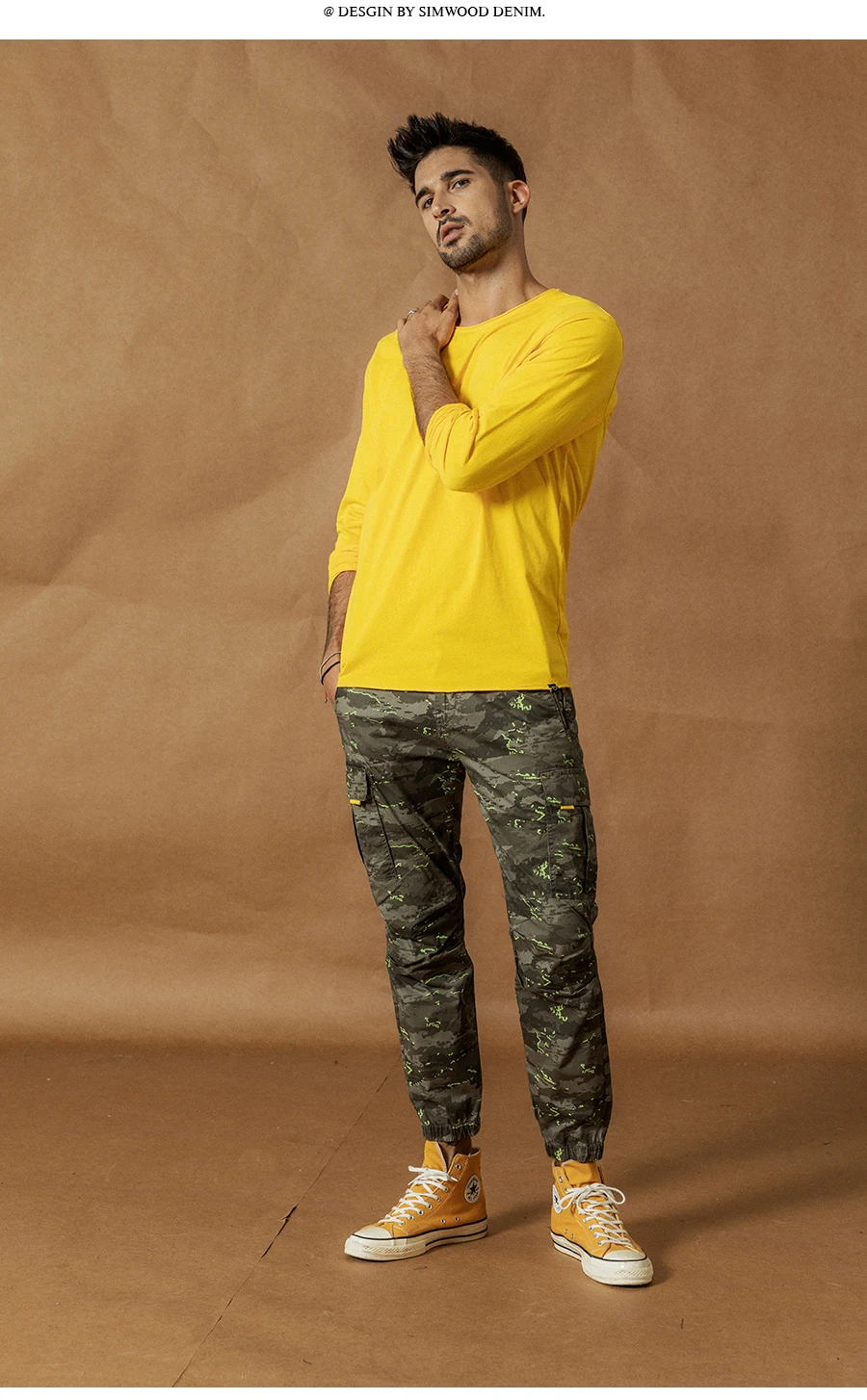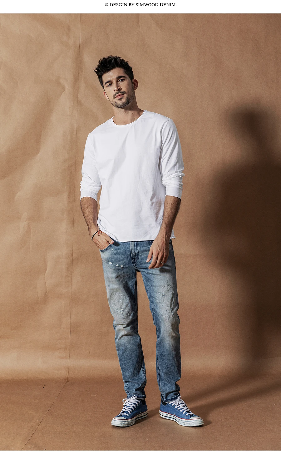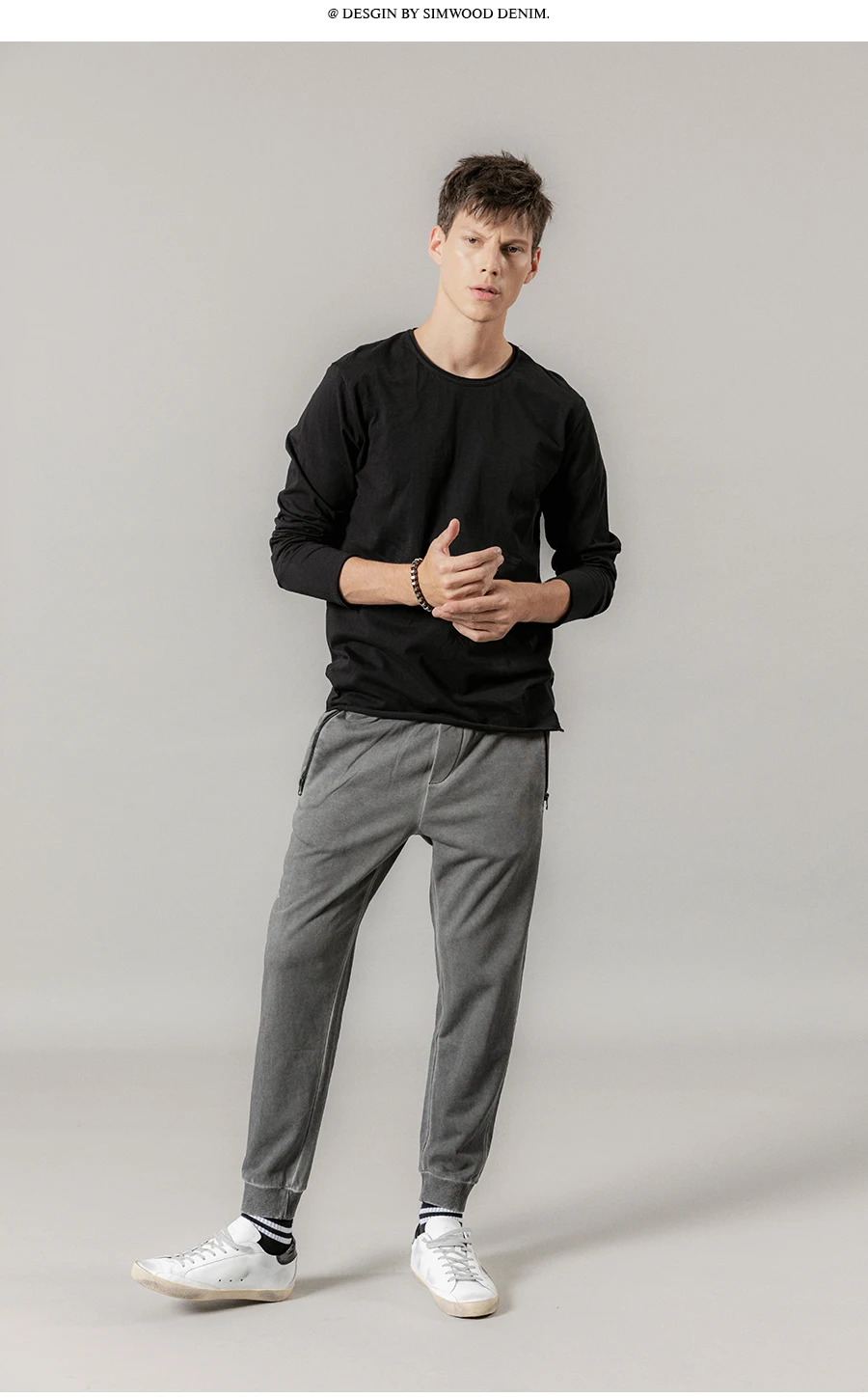 SIMWOOD 2022 Весна Зима Новая Однотонная футболка с длинным рукавом мужская футболка с необработанным рулоном текстура качество 100% хлопок топы SI980585