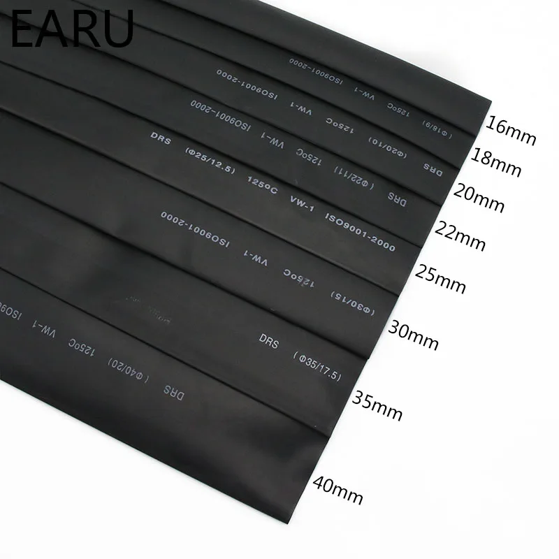 Термоусадочная трубка 2:1, черная, 1 метр, 15 мм, 16 мм, 18 мм, 20 мм, 22 мм, 25 мм, 28 мм, 30 мм, 35 мм, 40 мм