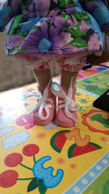 Ботиночки подошли как влитые, носочки под них не наденешь они получились ровно по ножке для куклы СССР. Сделаны предельно аккуратно, все четко и ровно хоть самому носи! Продуманы детали. Сняла-надела пару раз и они уже стали более свободно надеваться.