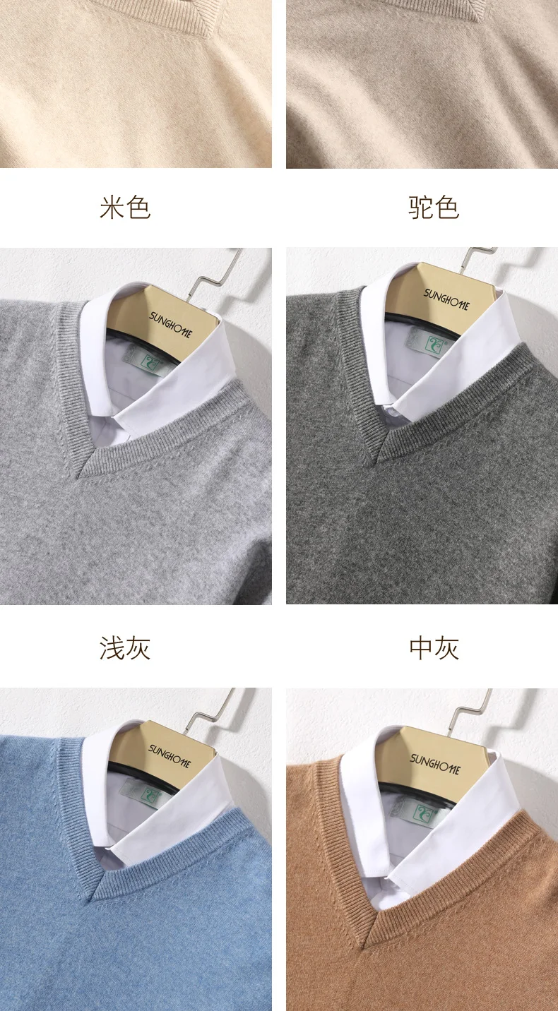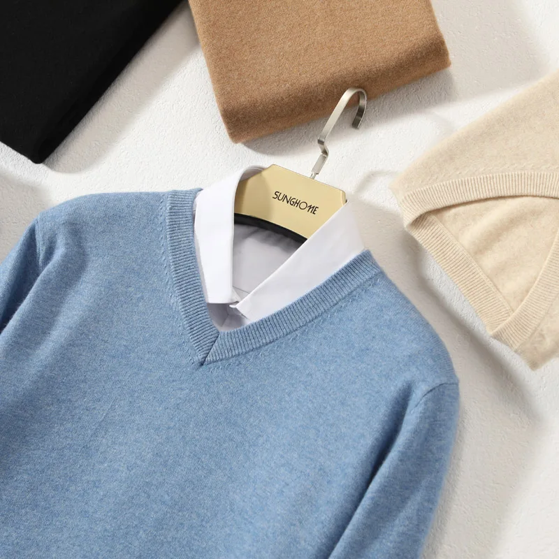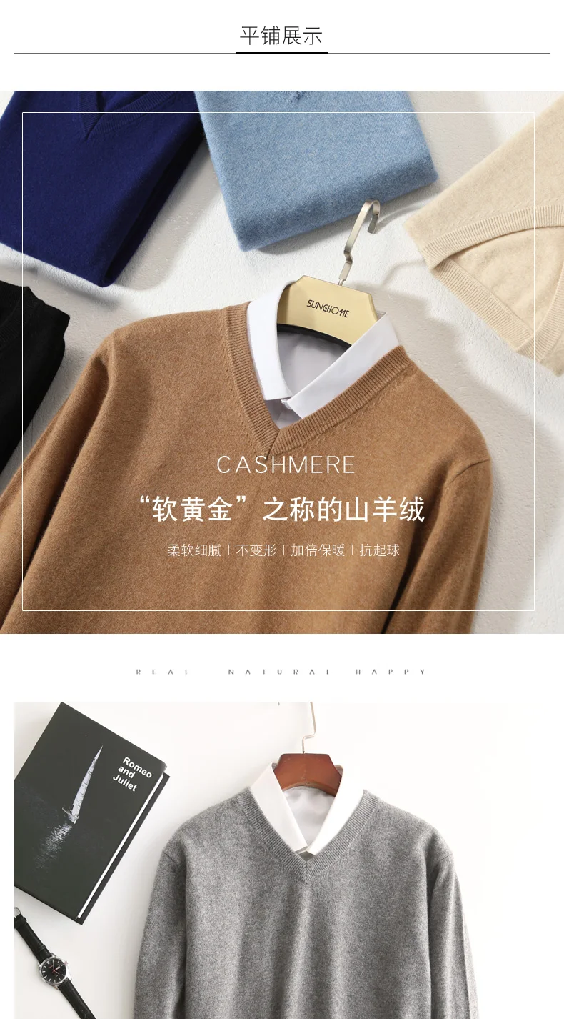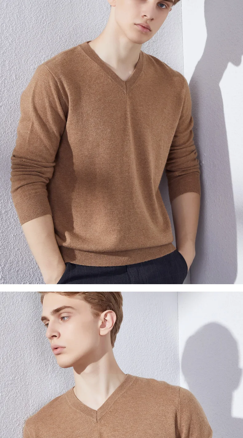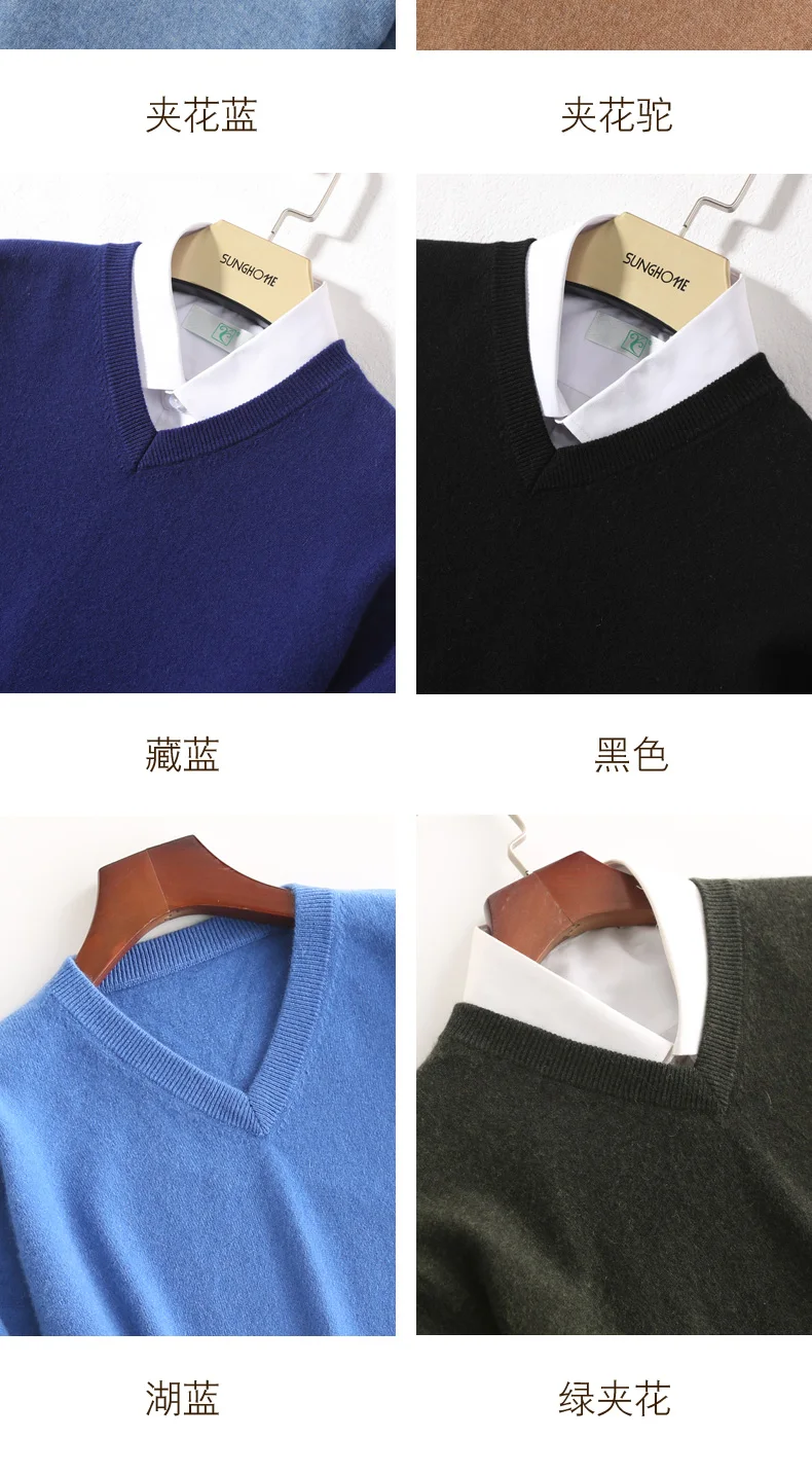 Свитеры с треугольным вырезом для мужчин, 100% кашемир, вязаный пуловер, зима, 10 цветов, Новая мягкая мужская одежда