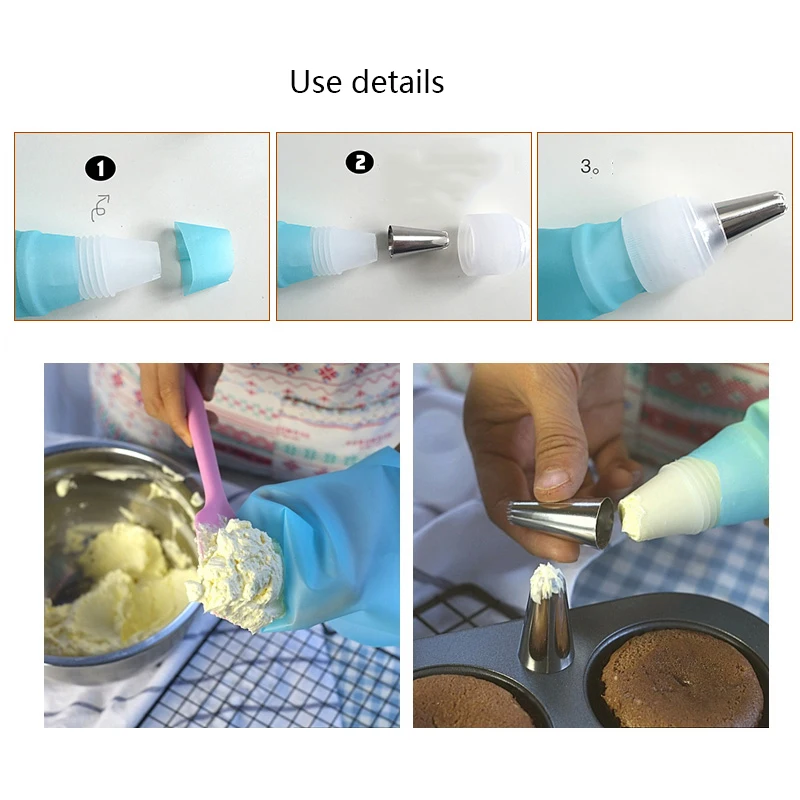 Набор силиконовых насадок для обледенения, кондитерский мешок для крема, 6 насадок из нержавеющей стали, набор насадки для украшения тортов сделай сам, кухонные аксессуары