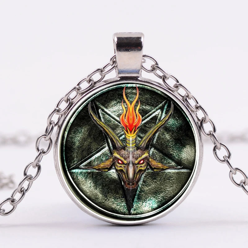 Азиатских Модные солнцезащитные очки в стиле ретро с рисунком пентаграммы рогатый ожерелье Пан Бог череп сатанизм оккультных кабошоны разрисованные изделия из стекла подвеска в стиле готик-панк ювелирные изделия для мужчин