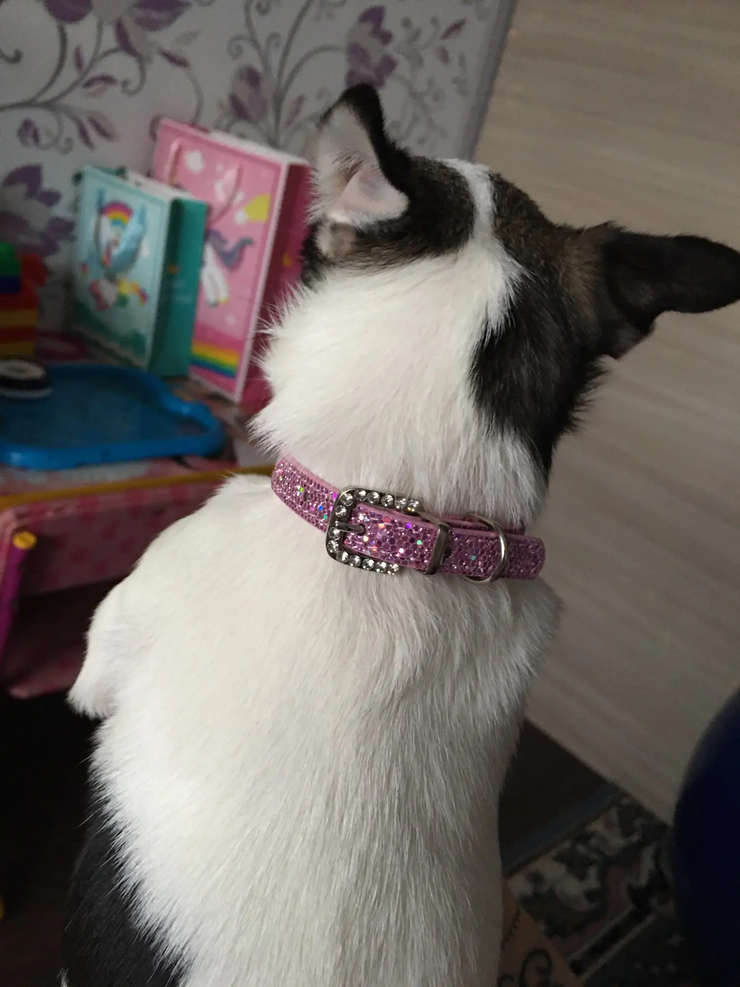 красивый ошейник со стразами. без запаха. достаточно быстрая доставка.