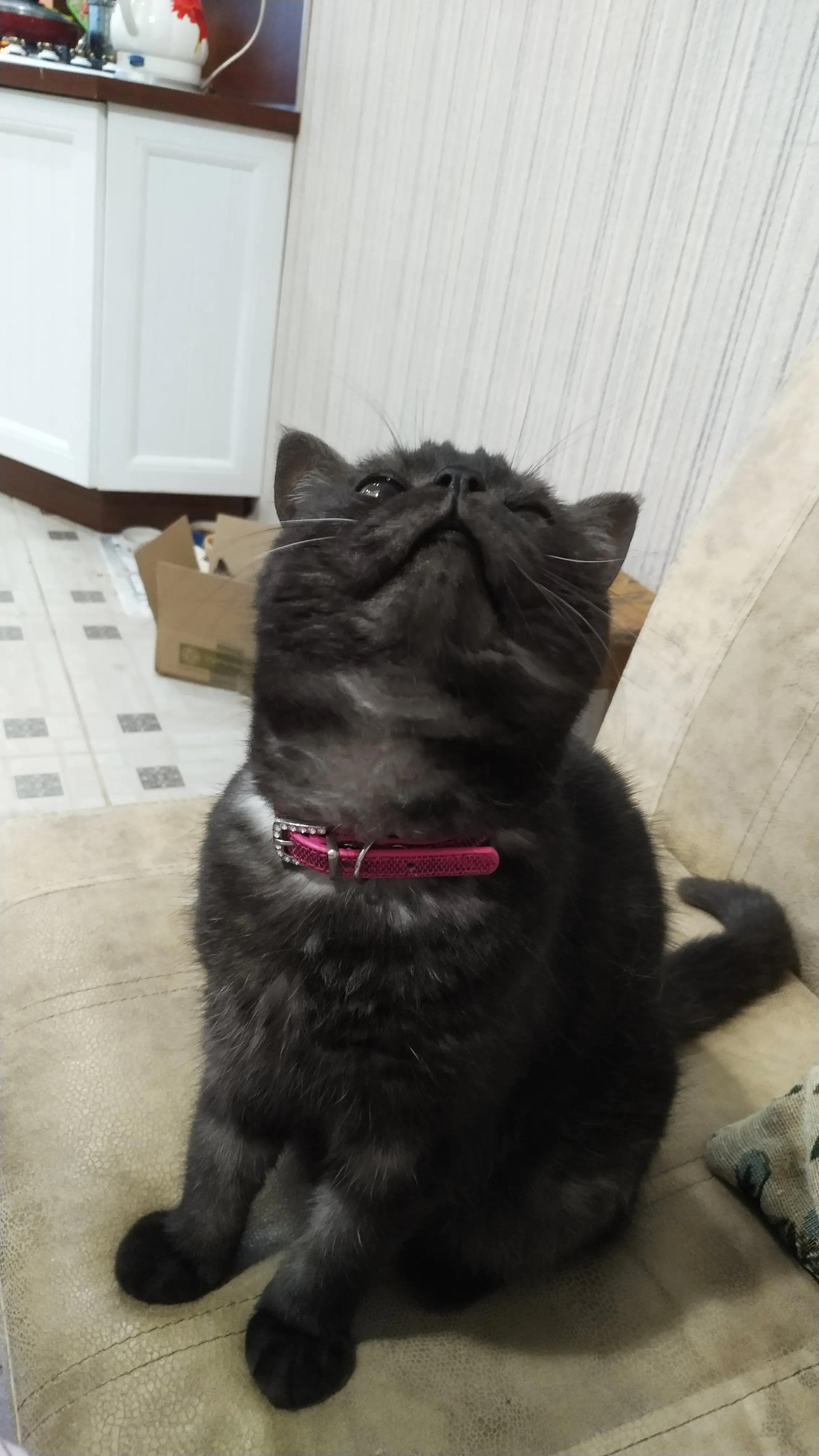 Ошейник супер, кошка в восторге! Блестит красиво. Рекомендую. В магазине такой за 350 мин продают.