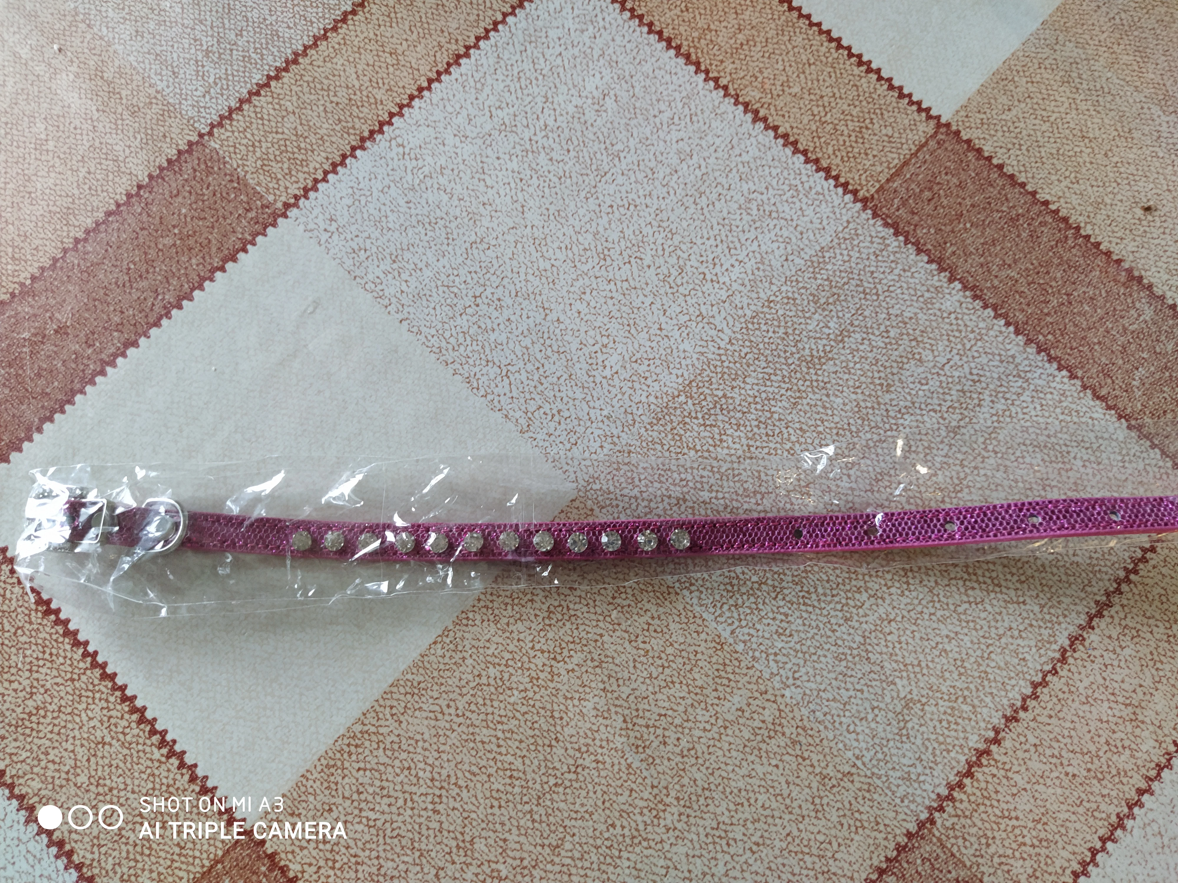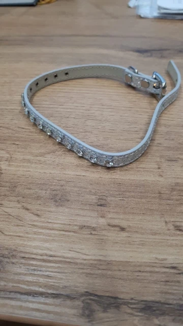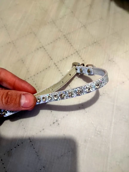 красивый ошейник,камушки приклеены надёжно.на очень маленькую собачку или кошечку.